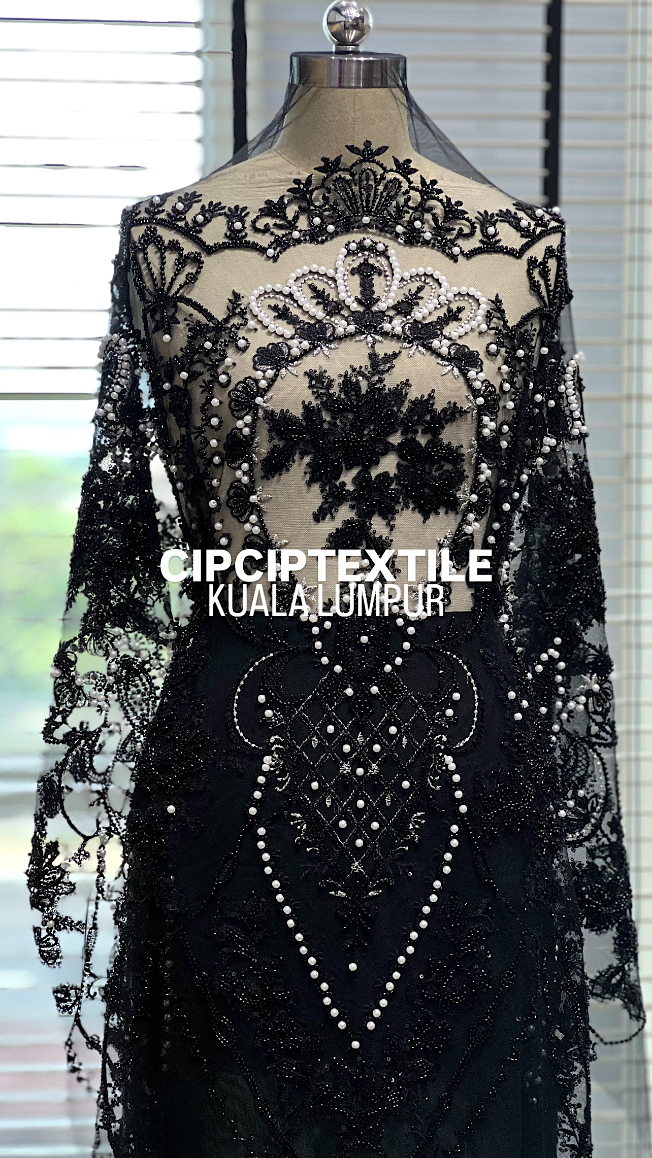 NEW (METAL BLACK) DARUN EXQUISITE GLASS BEADED LACE