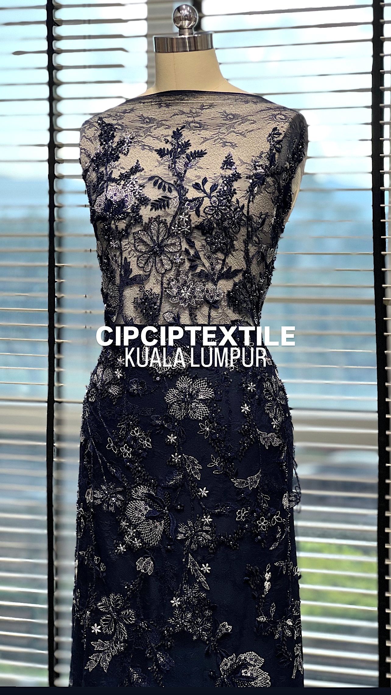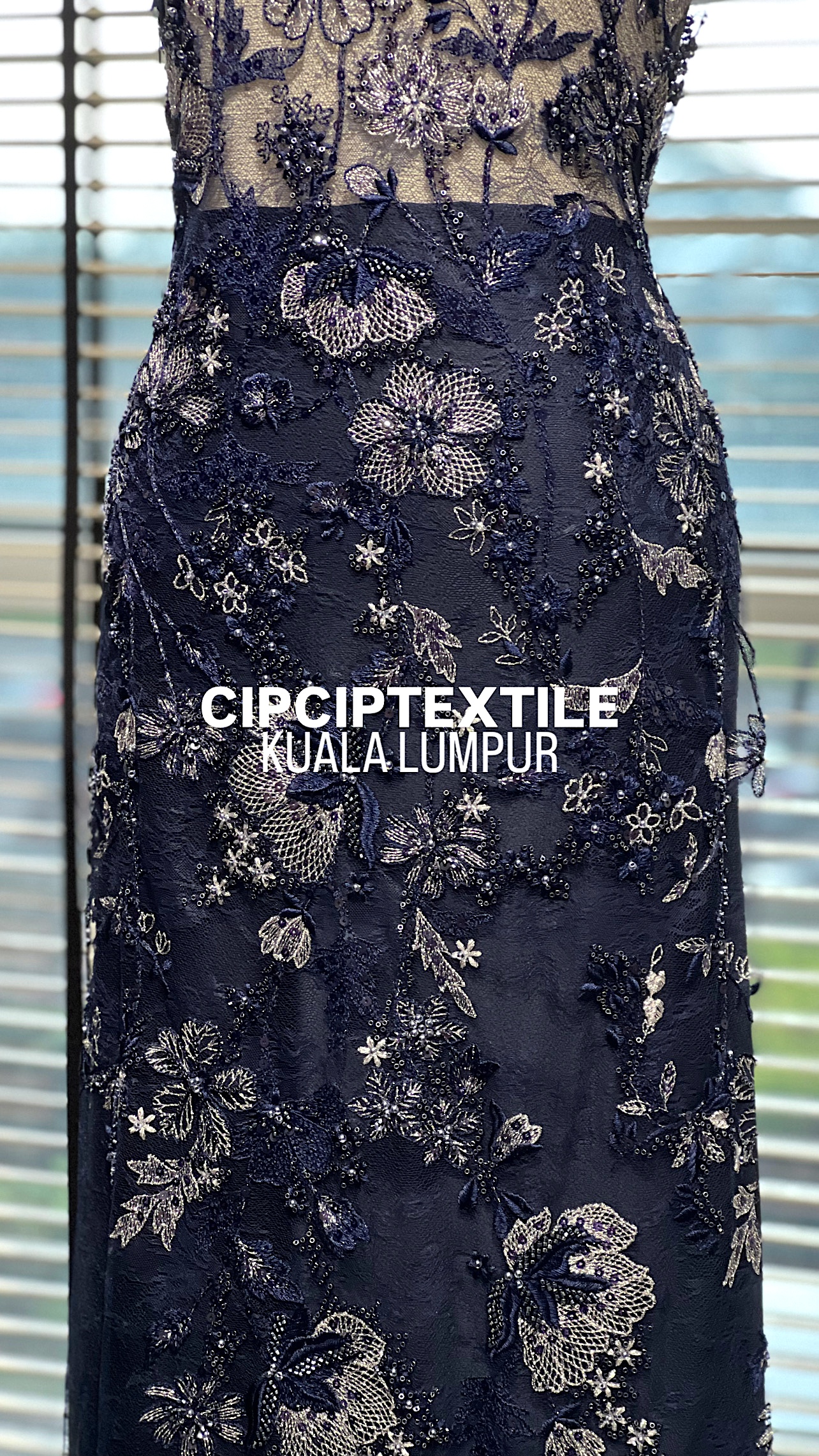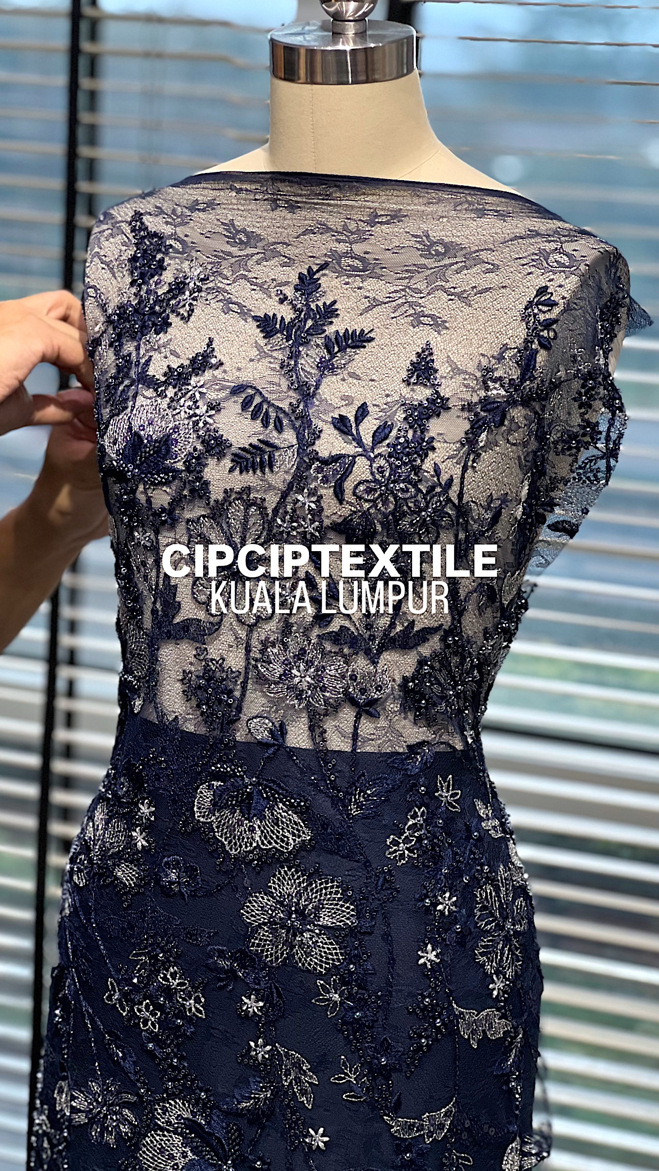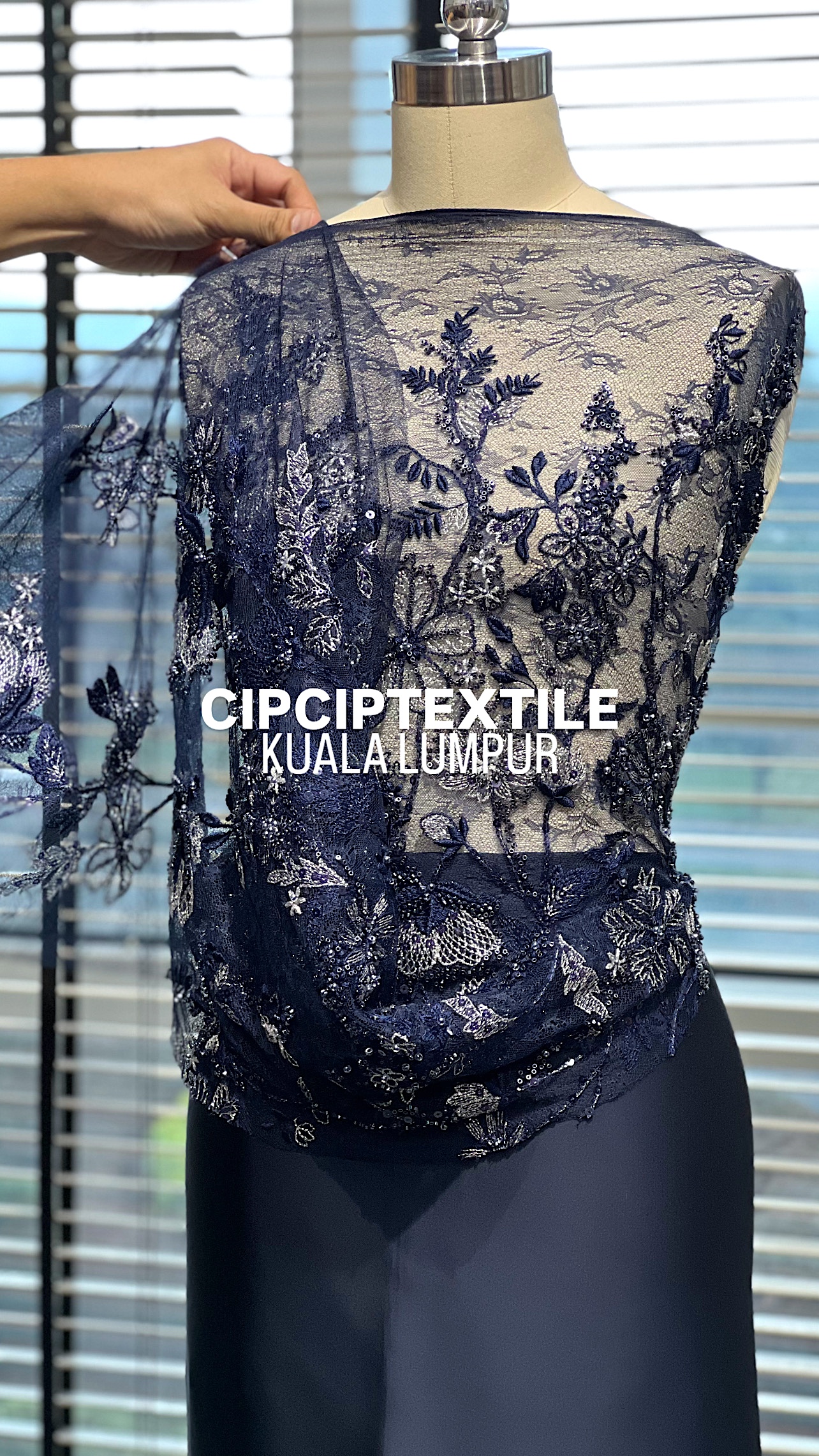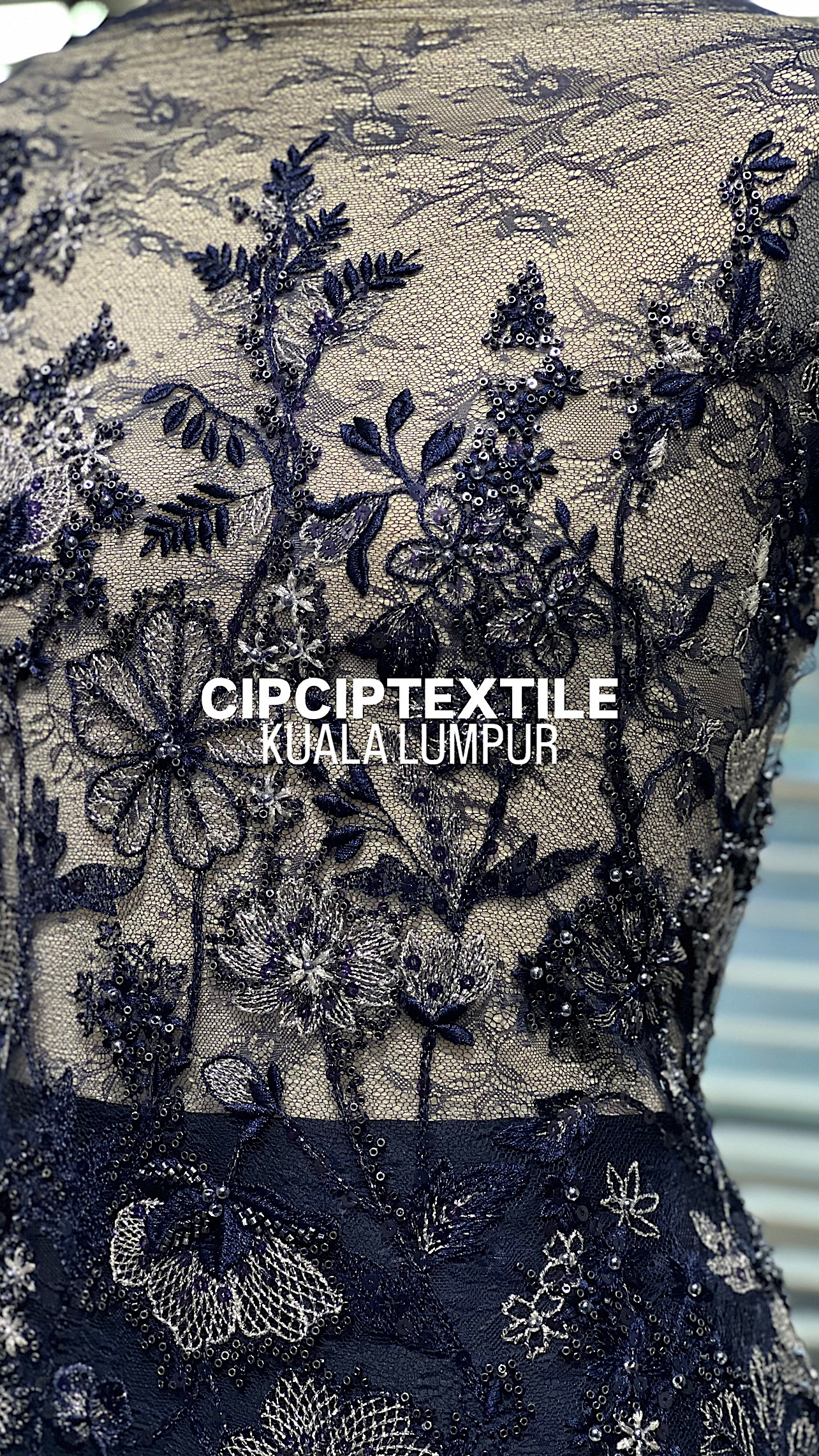 NEW (DARK BLUE) ROYAL PETAL FRENCH LACE PREMIUM BEADED