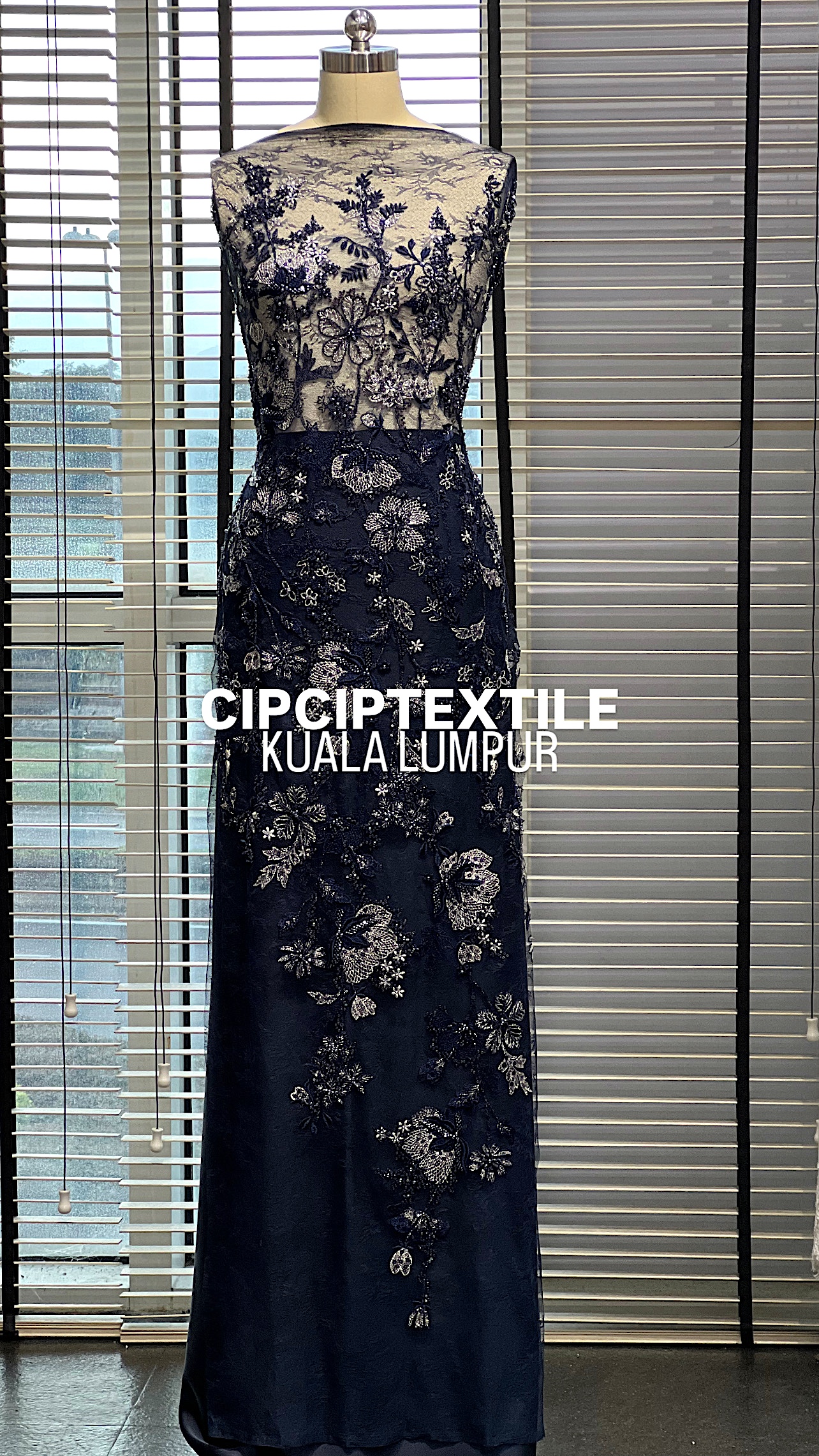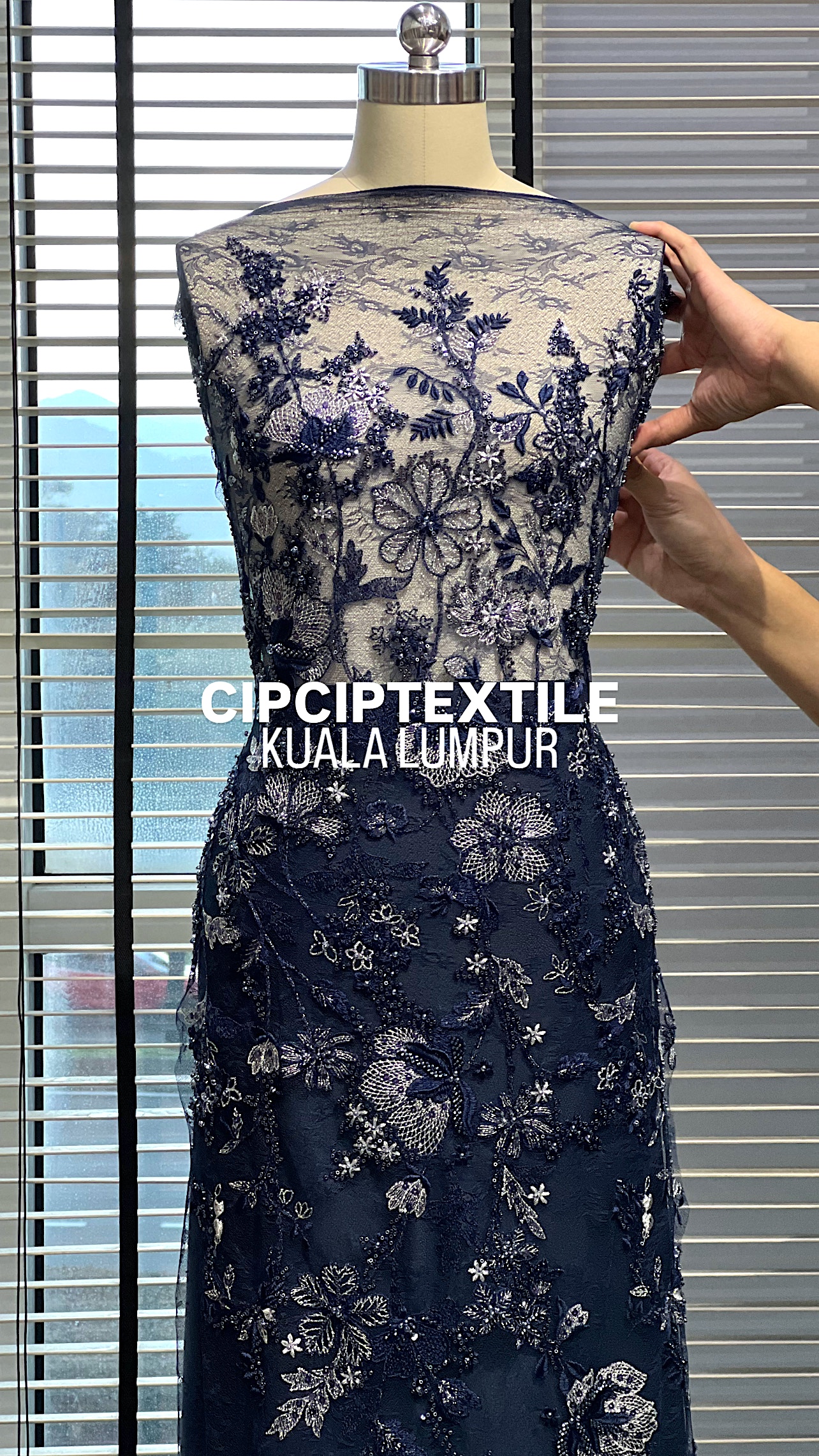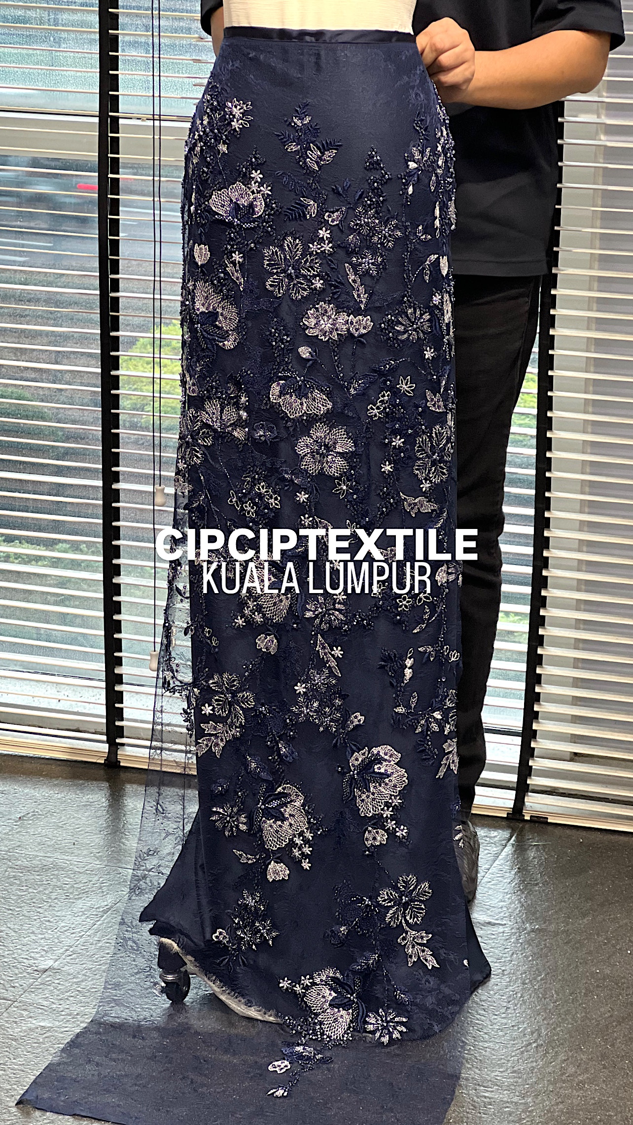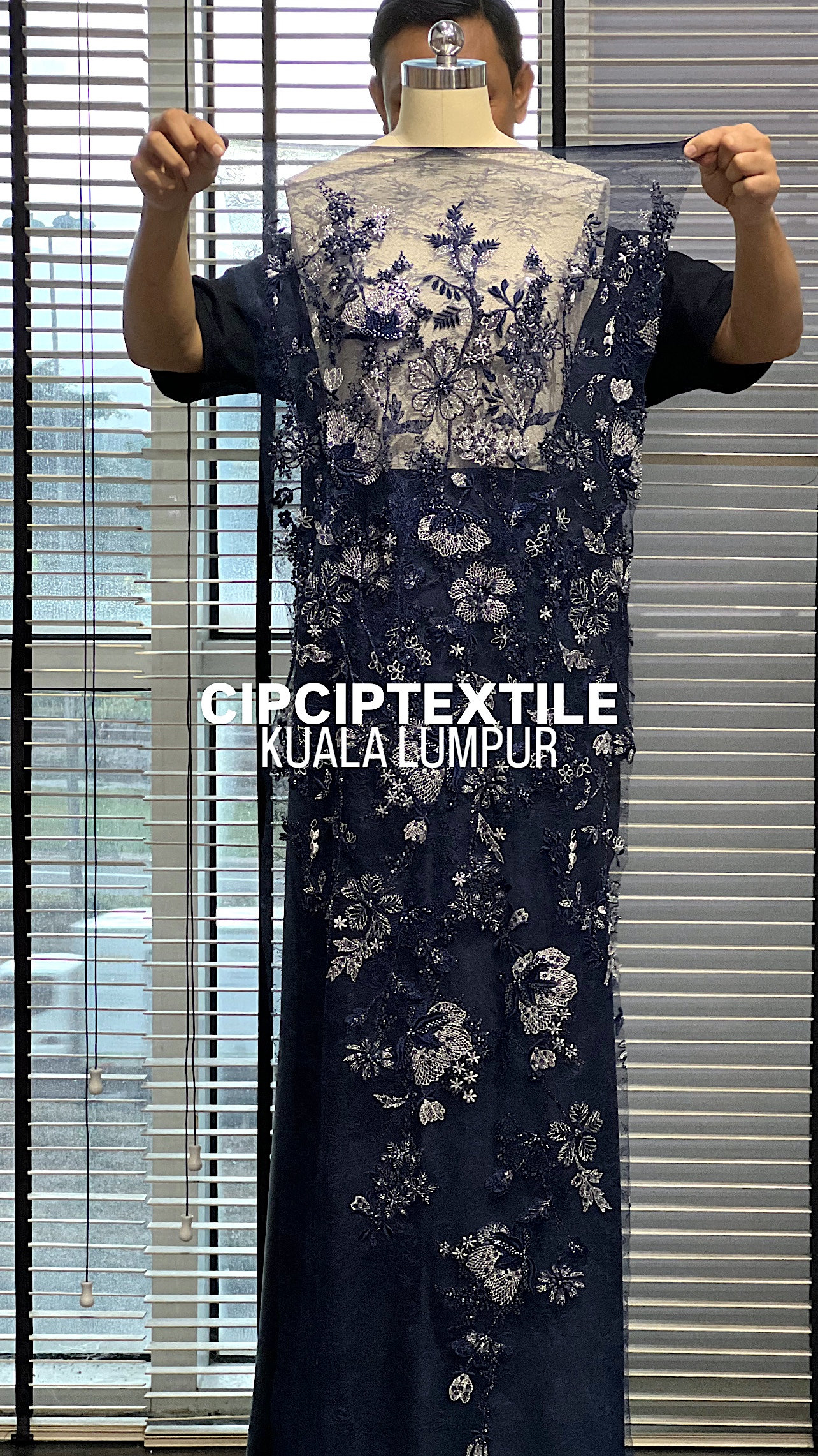 NEW (DARK BLUE) ROYAL PETAL FRENCH LACE PREMIUM BEADED