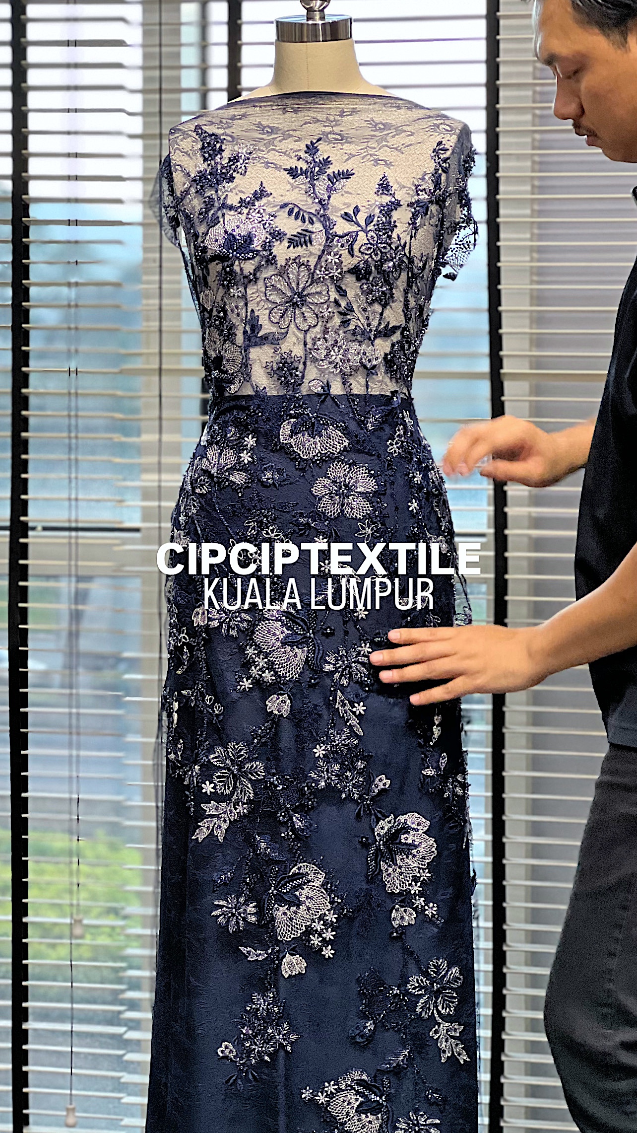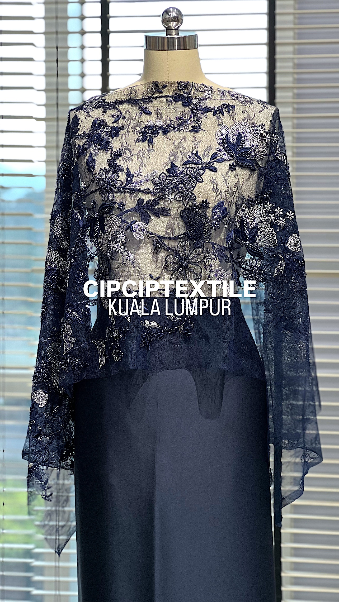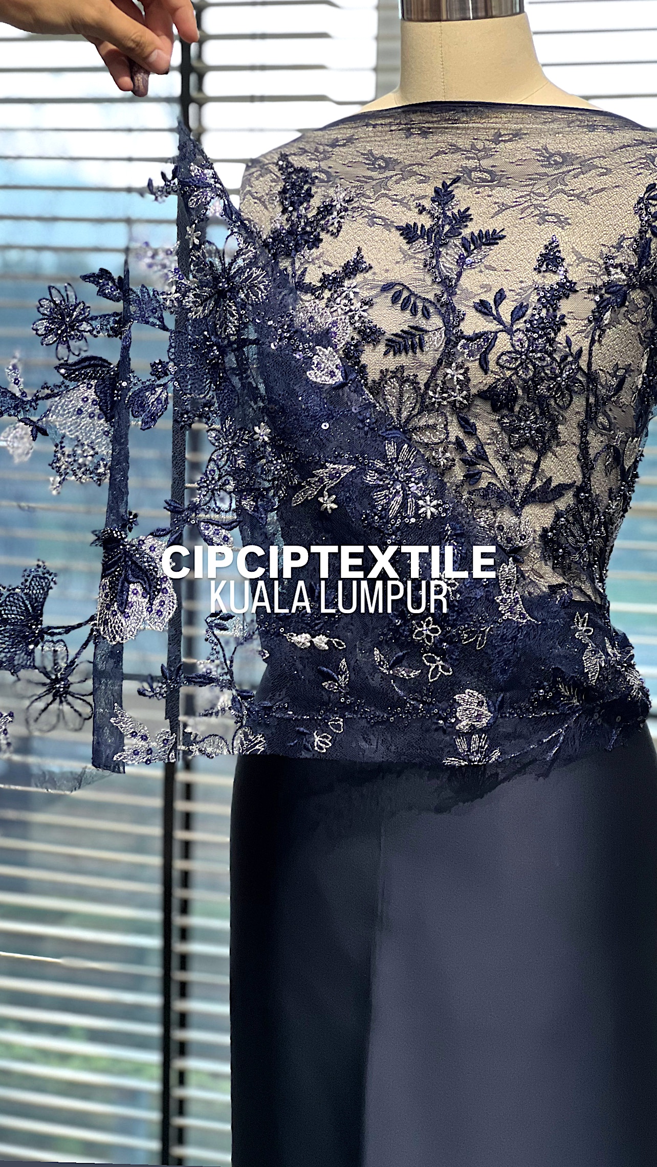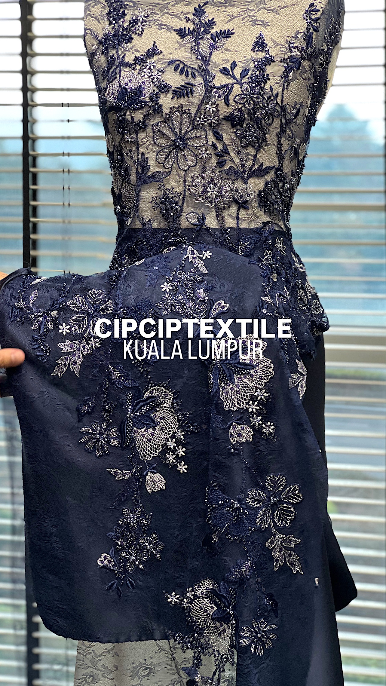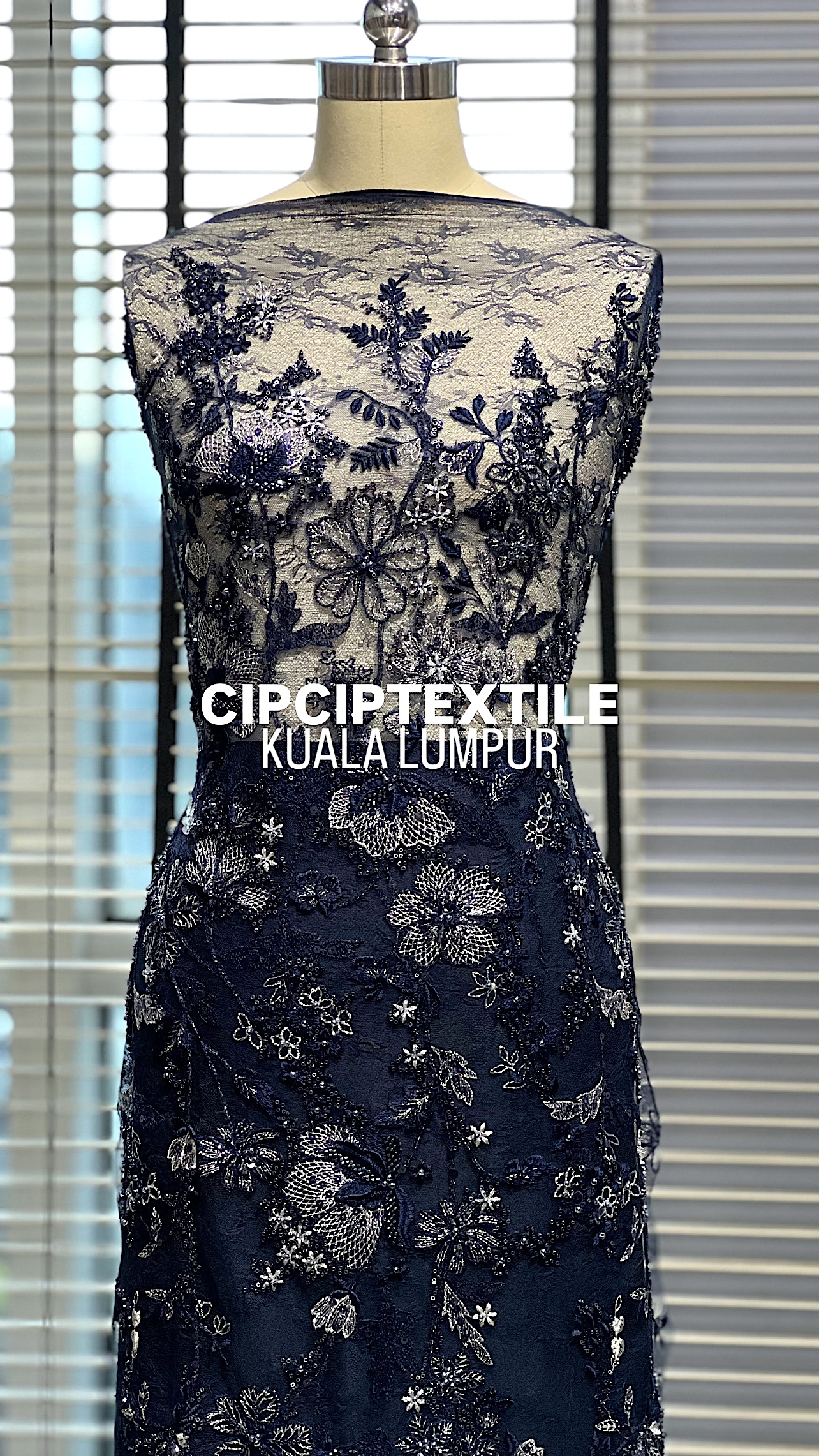 NEW (DARK BLUE) ROYAL PETAL FRENCH LACE PREMIUM BEADED