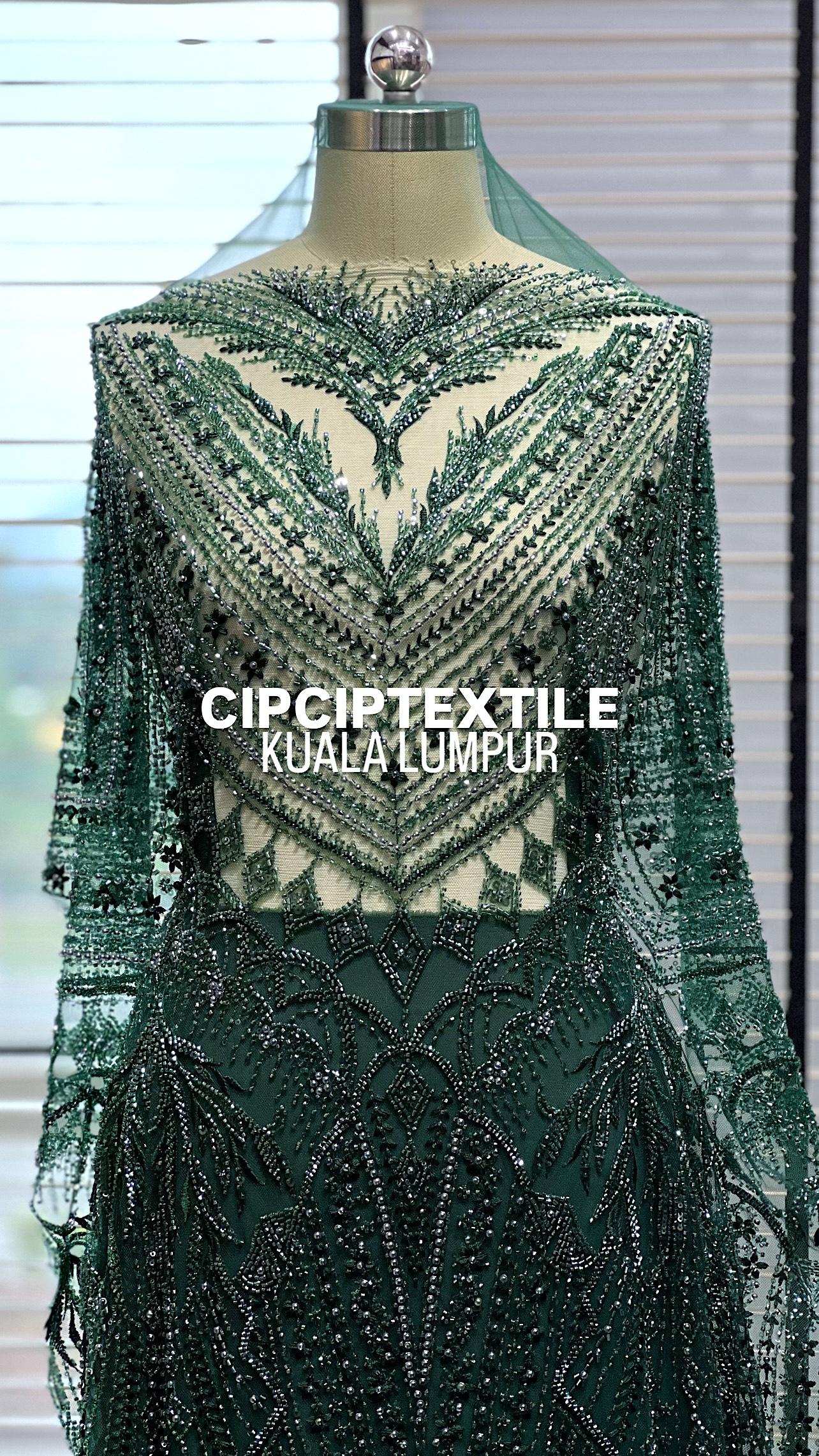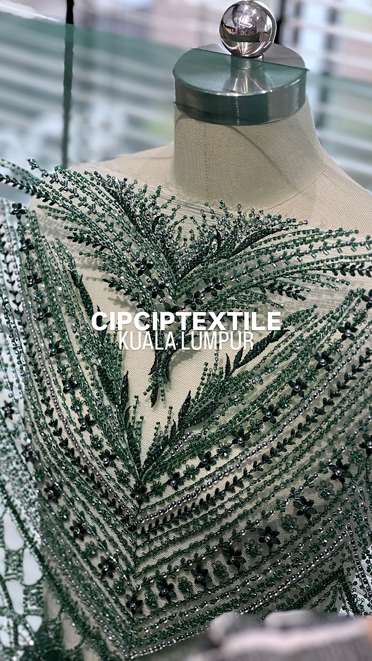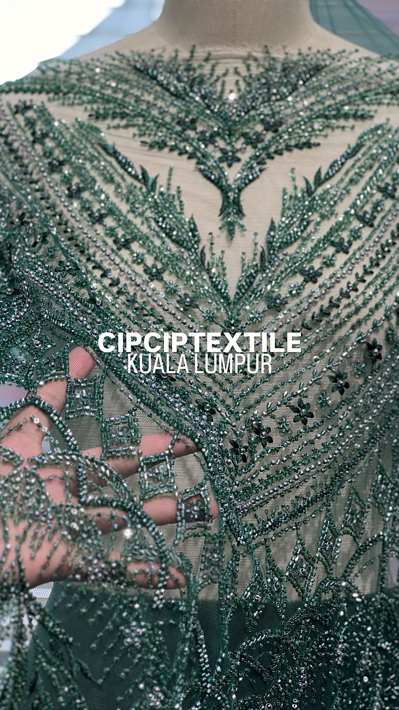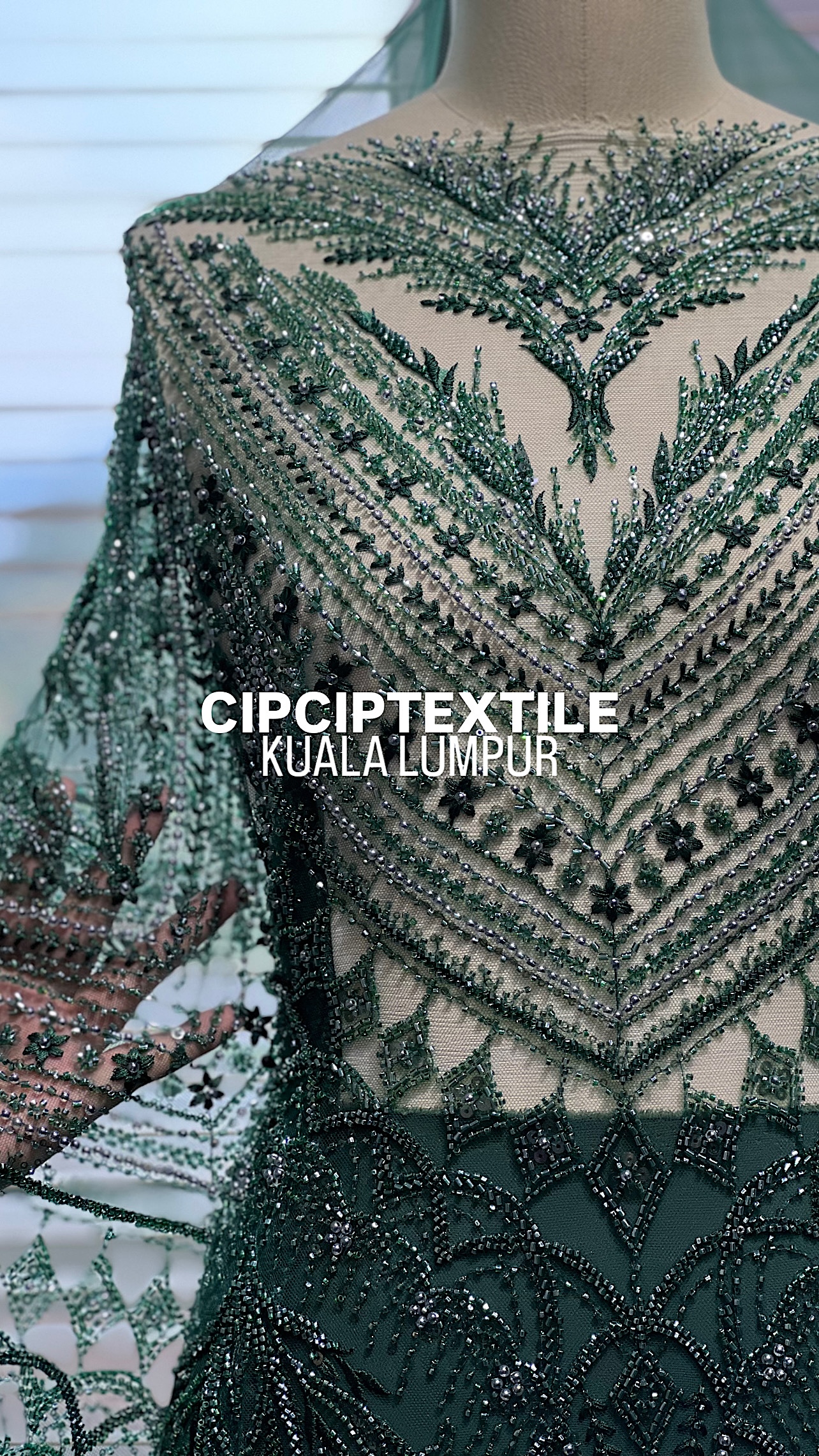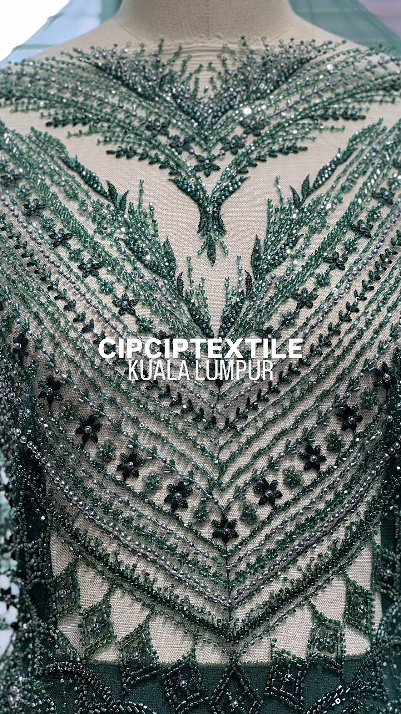 NEW (DARK GREEN) ZURI EXQUISITE GLASS PEARL BEADED LACE