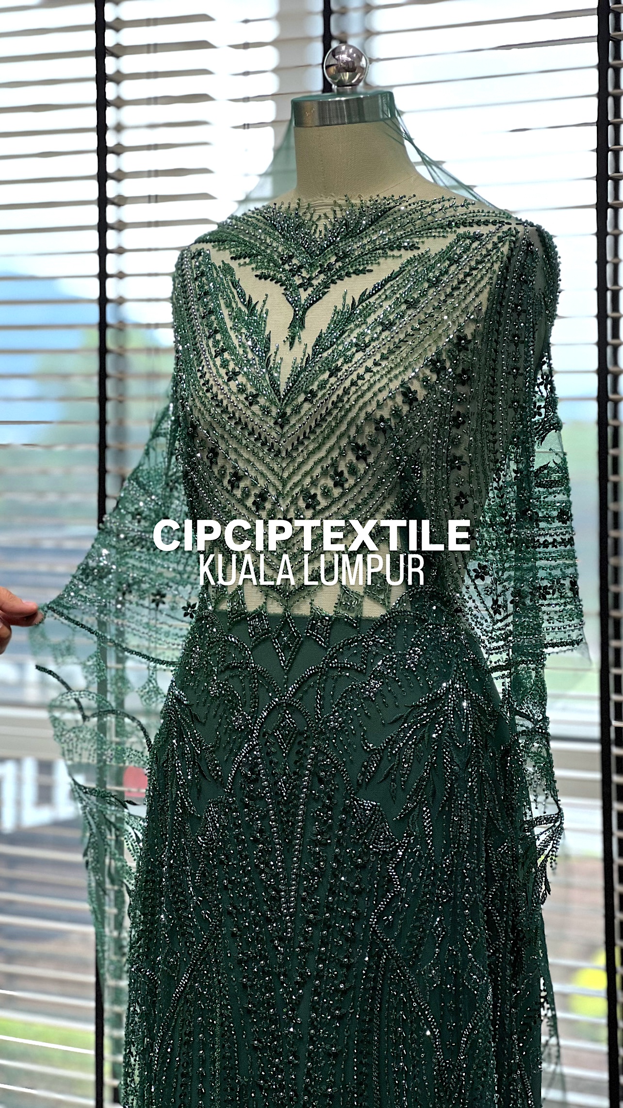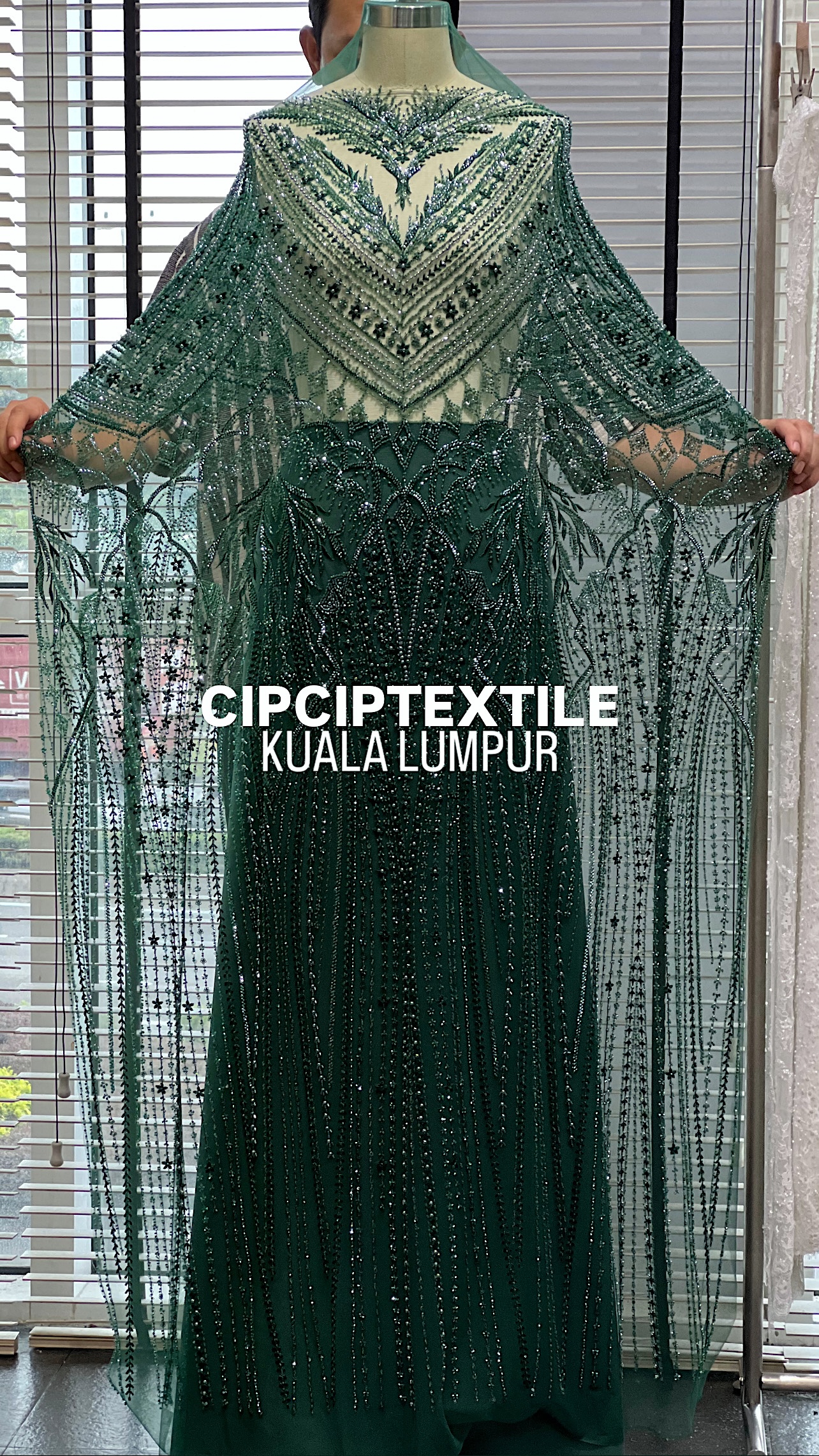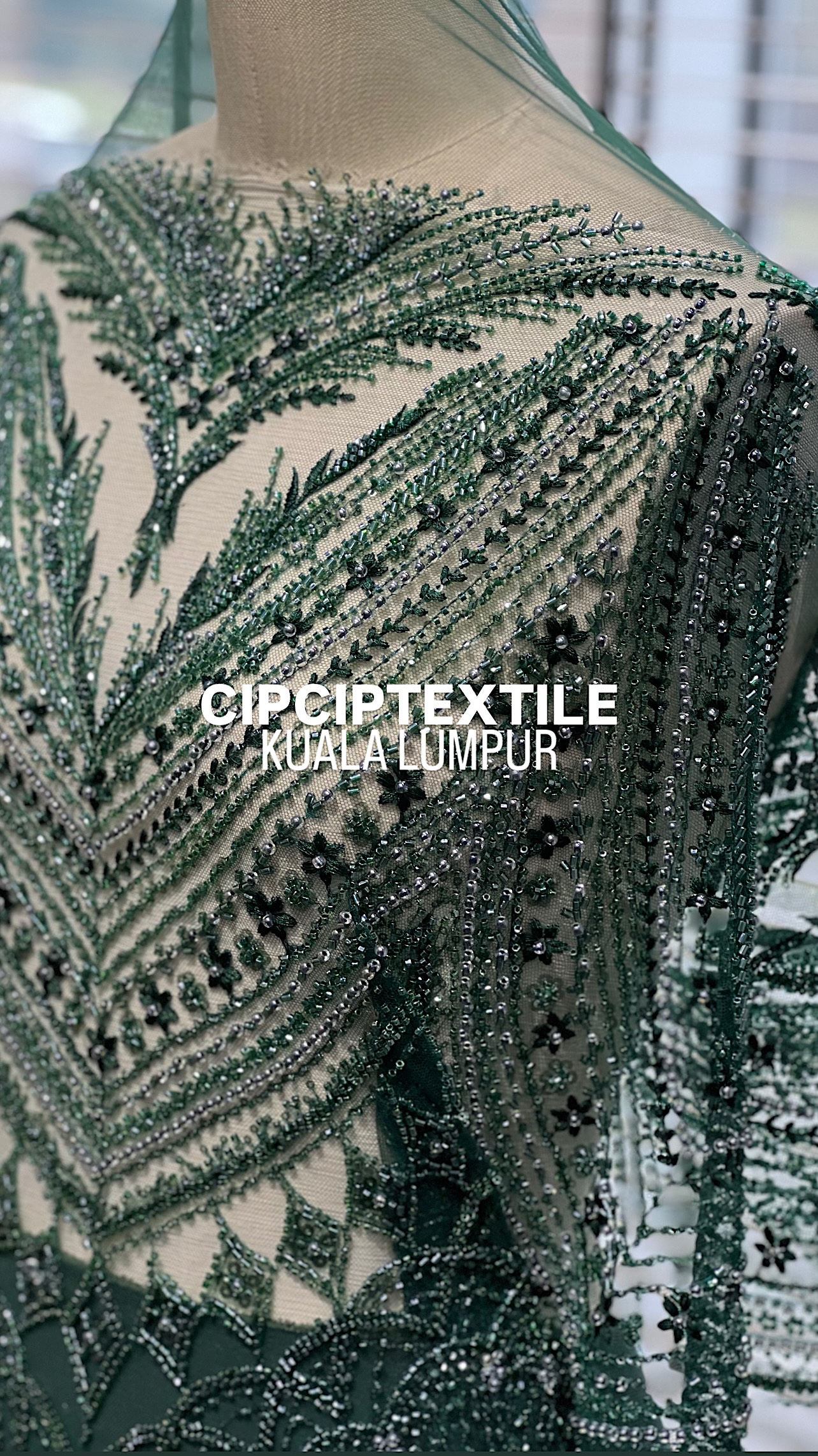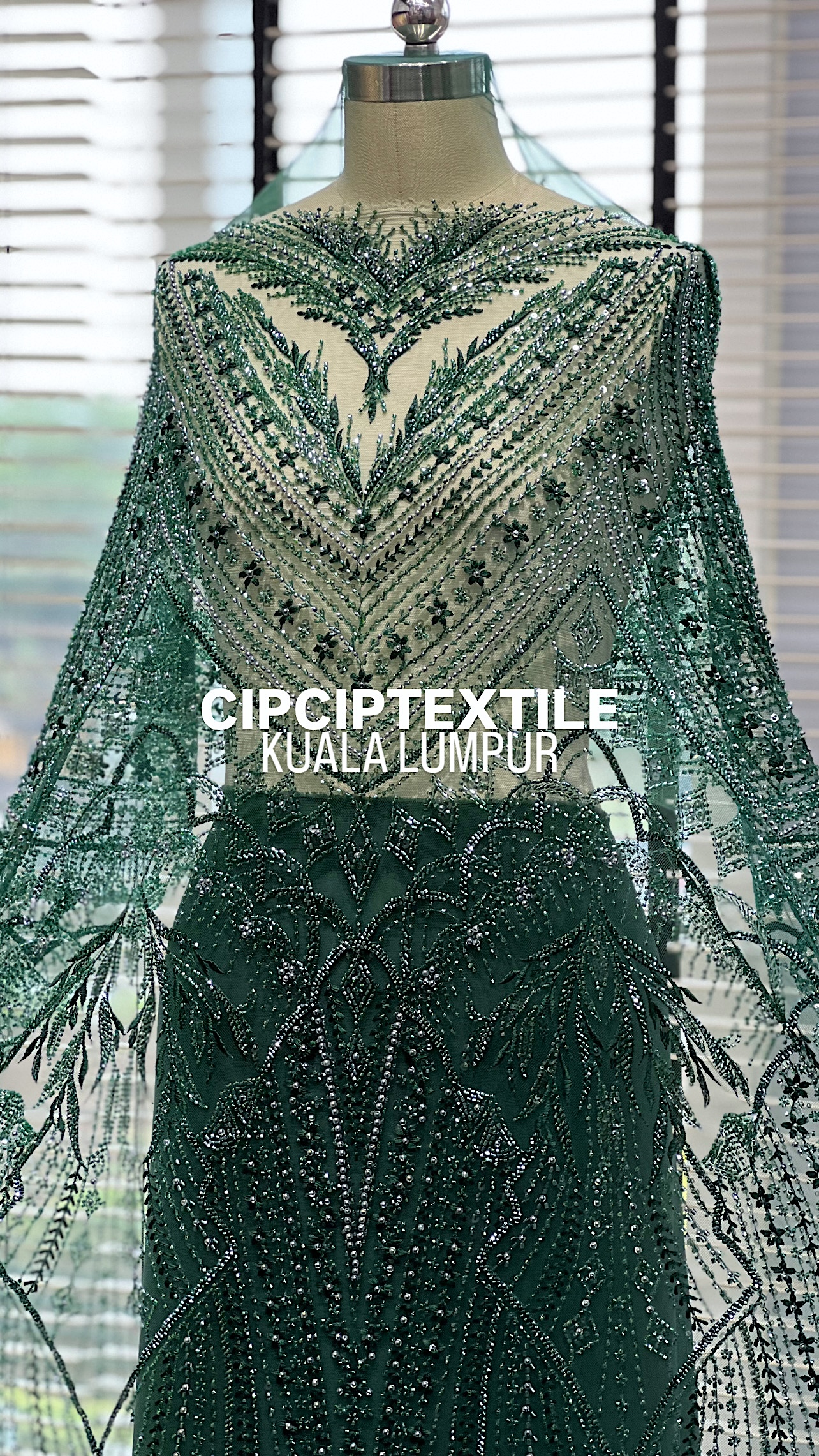 NEW (DARK GREEN) ZURI EXQUISITE GLASS PEARL BEADED LACE