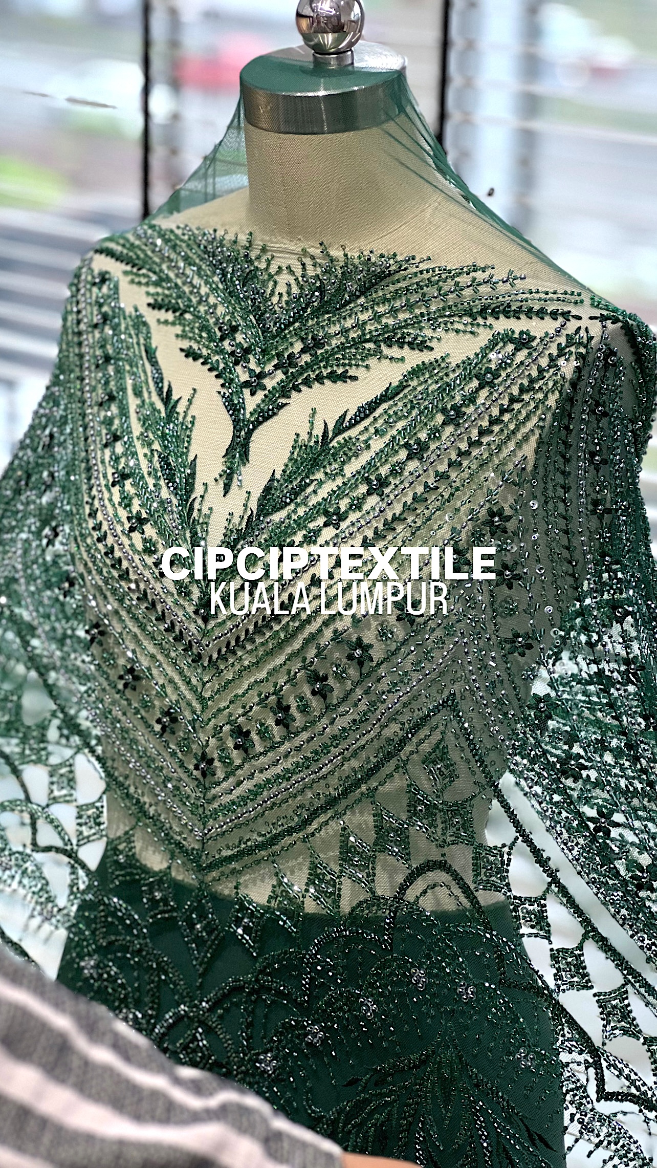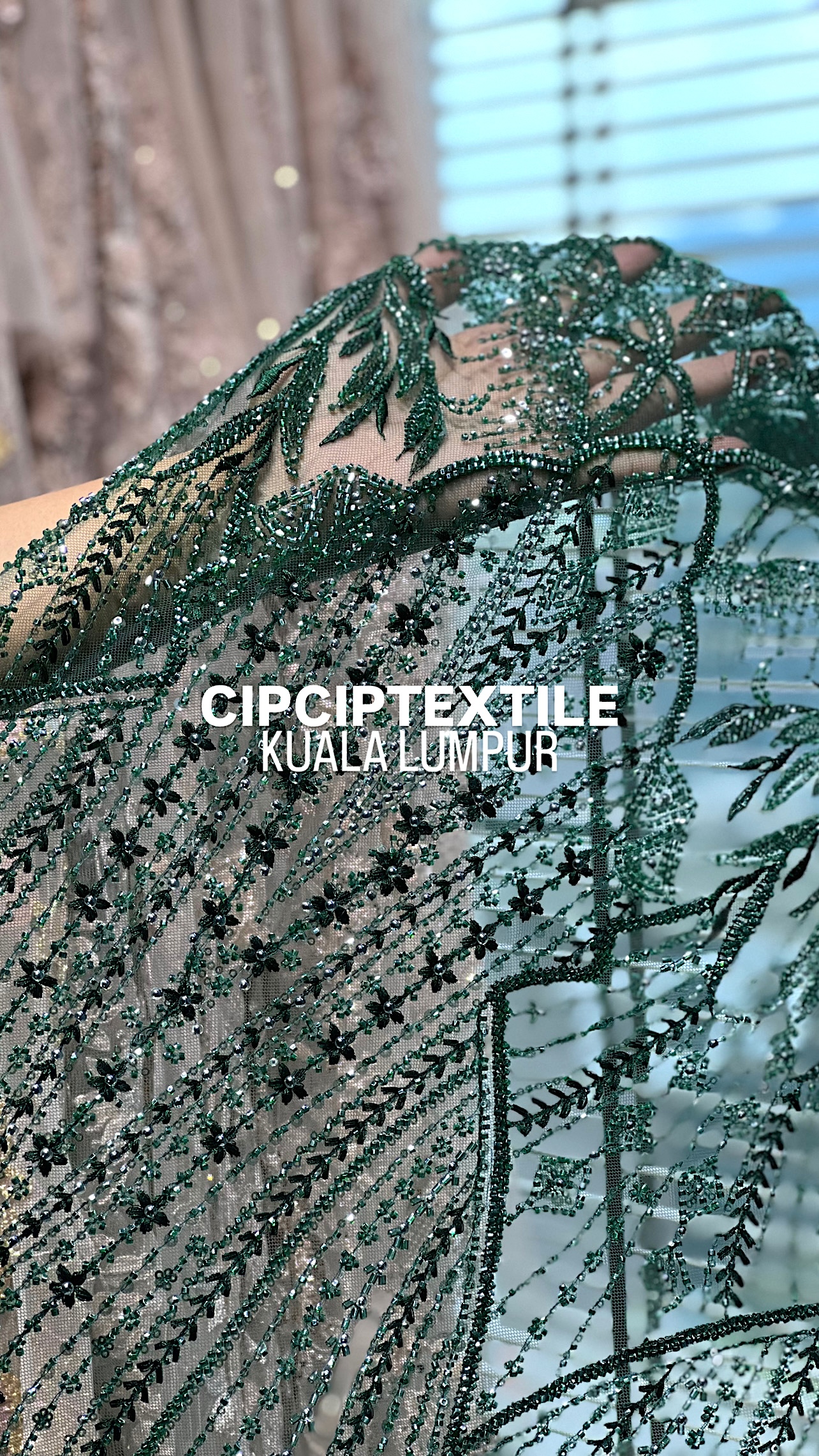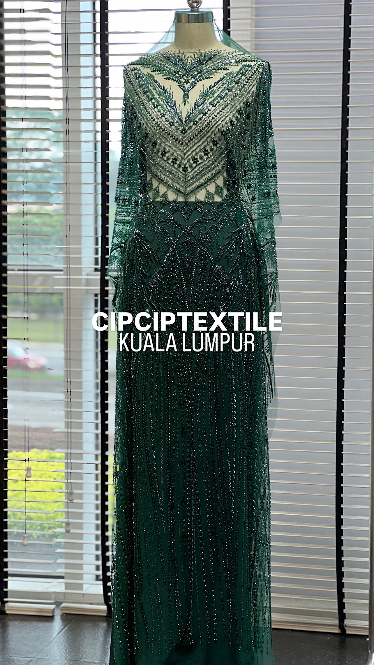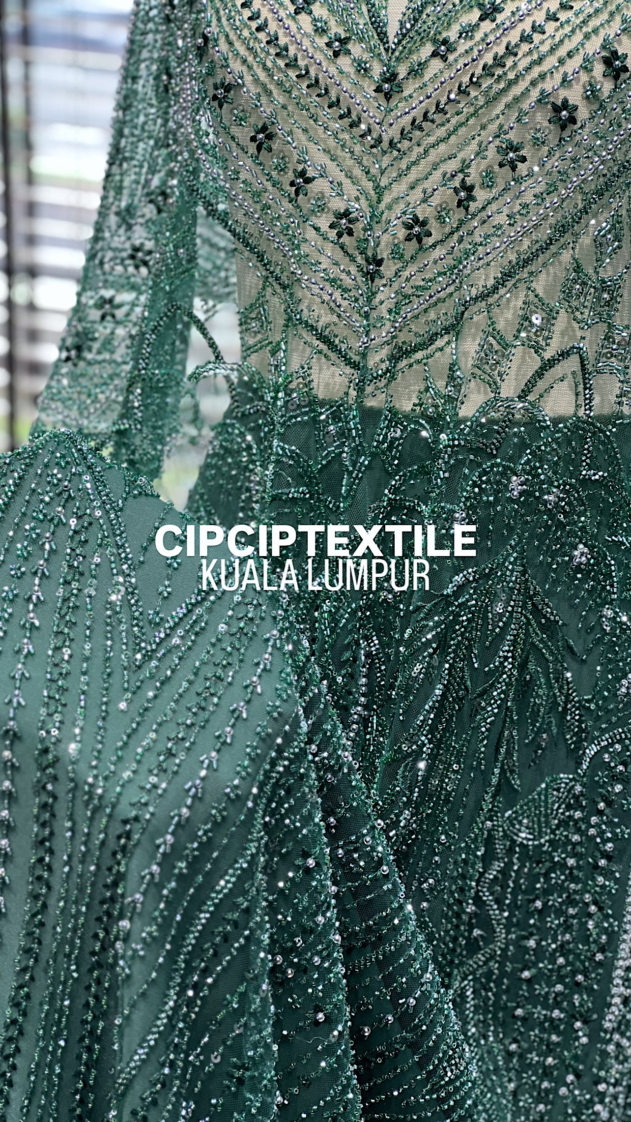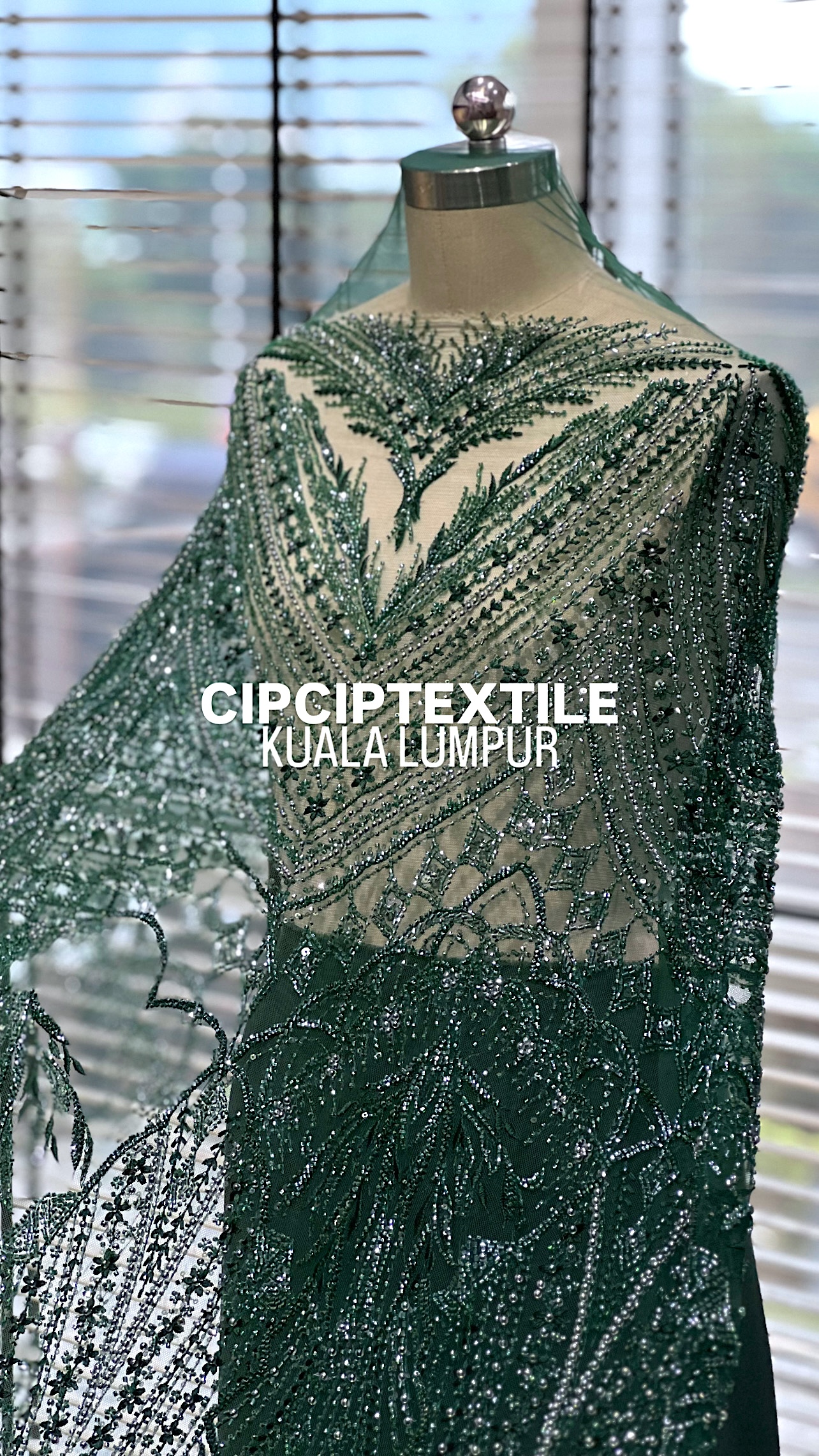 NEW (DARK GREEN) ZURI EXQUISITE GLASS PEARL BEADED LACE