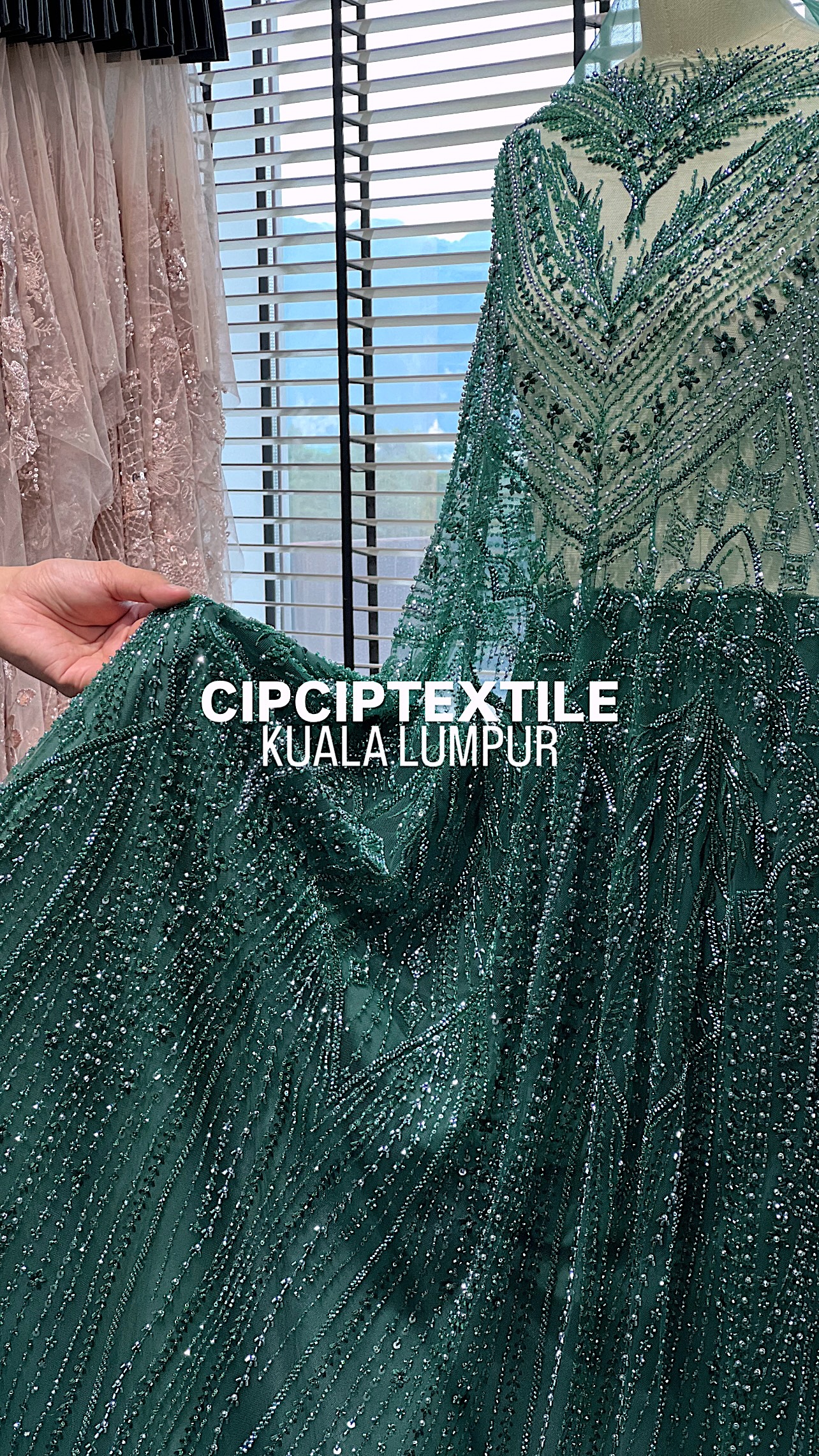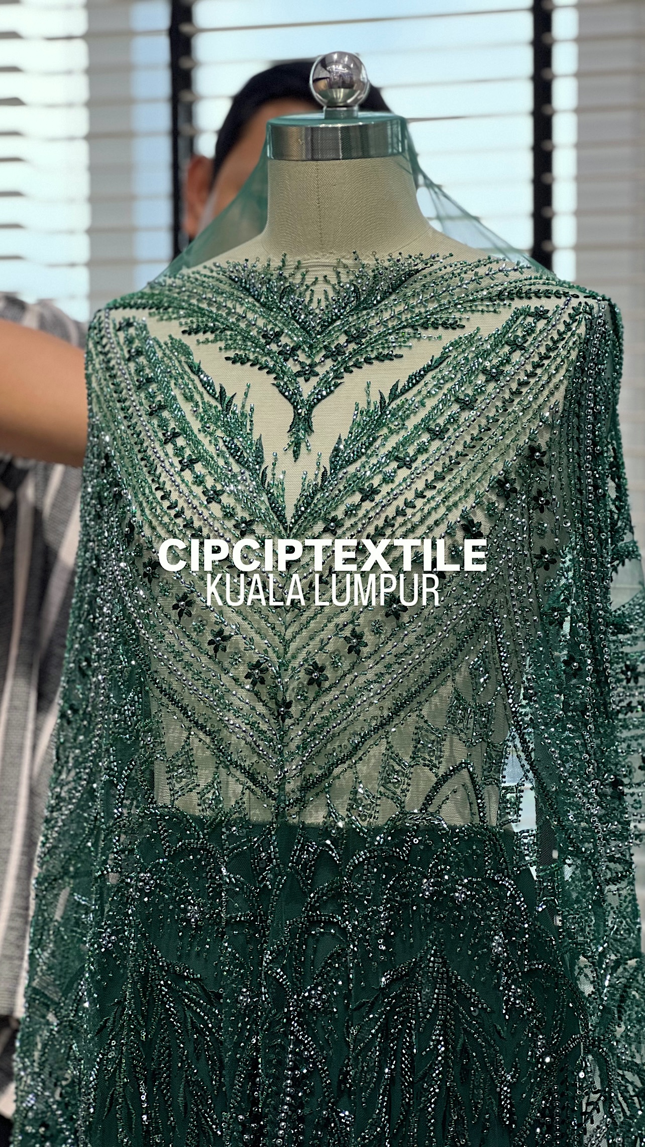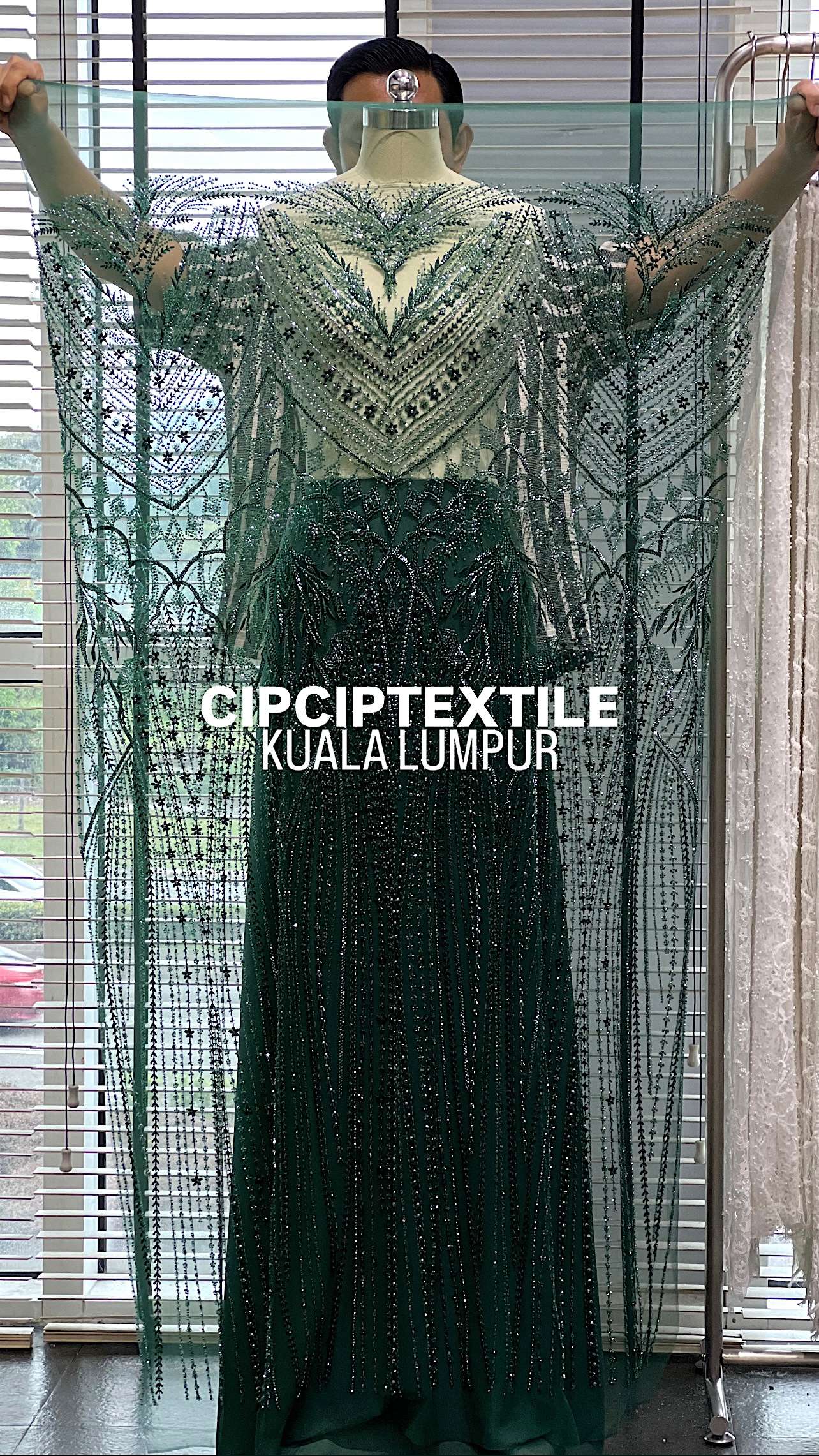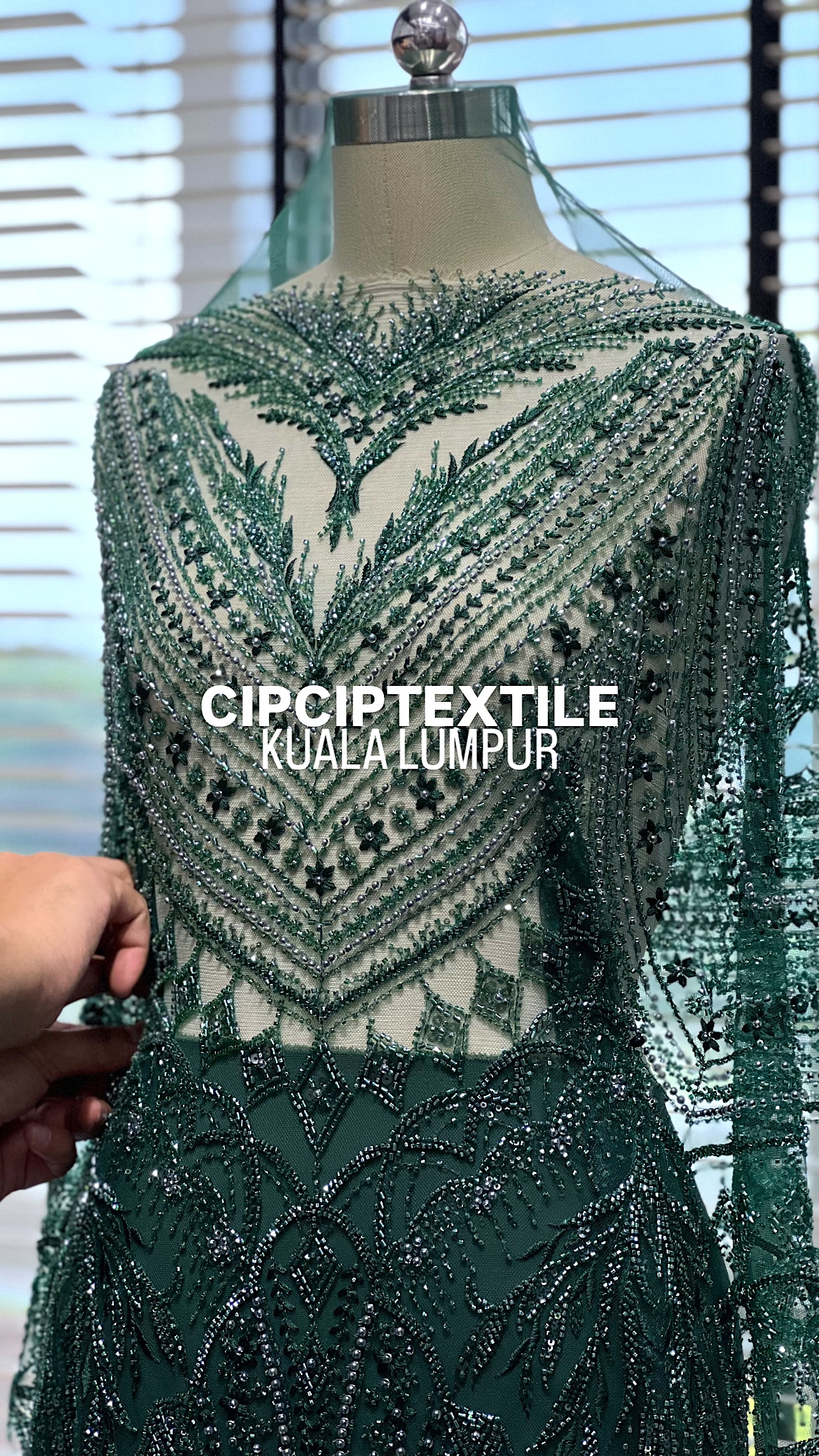 NEW (DARK GREEN) ZURI EXQUISITE GLASS PEARL BEADED LACE