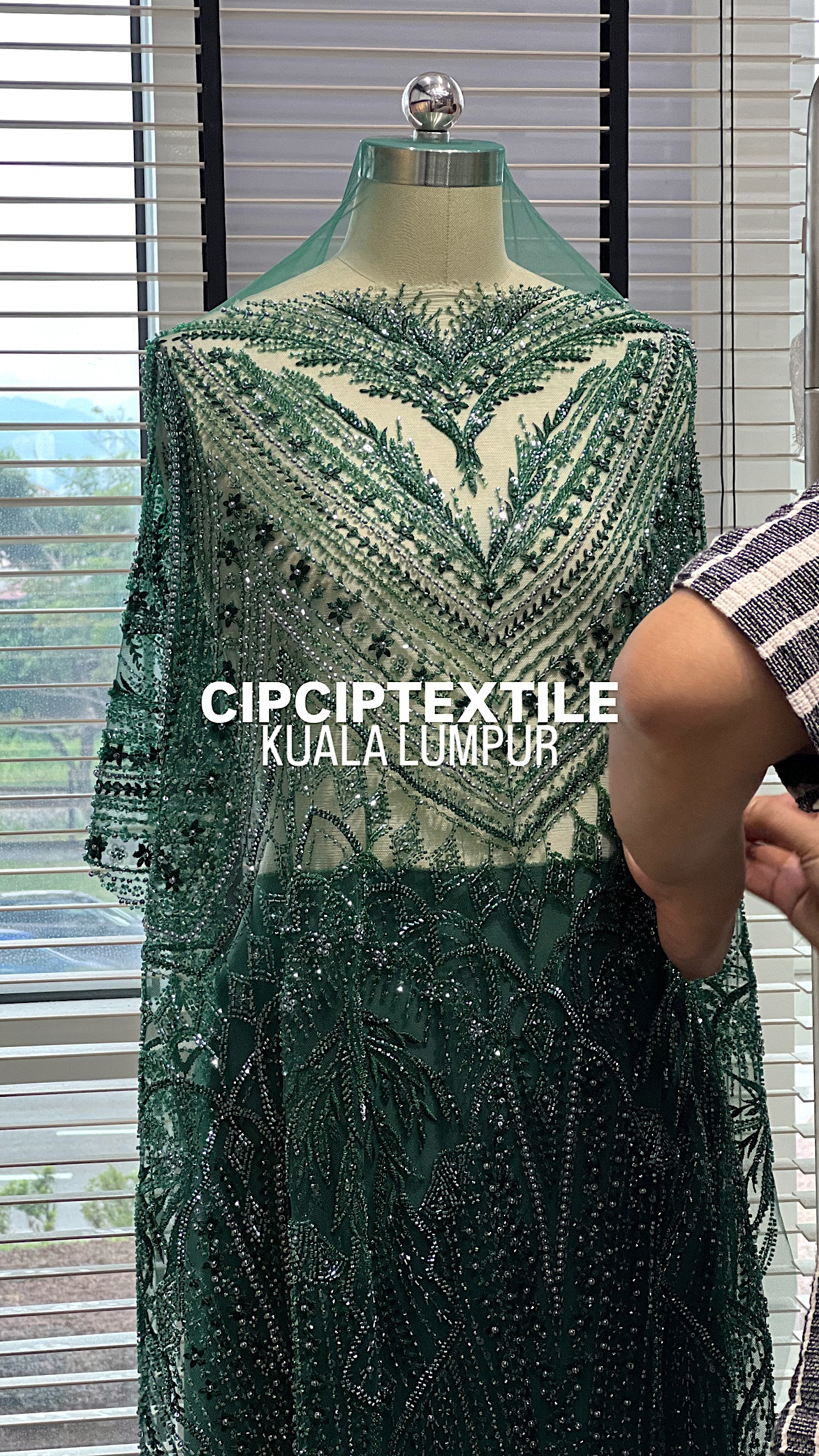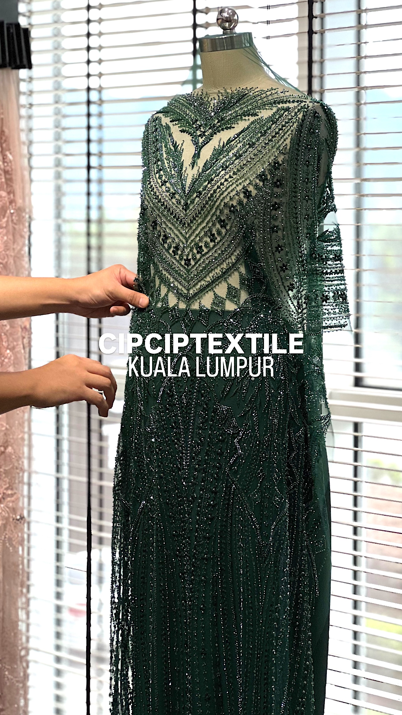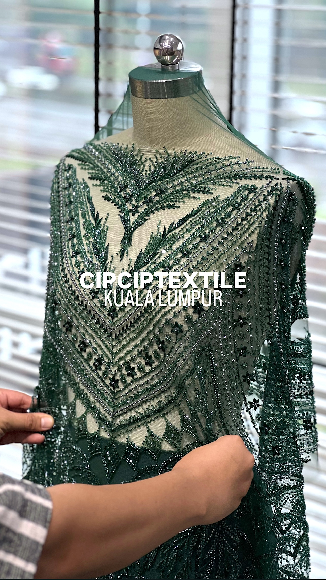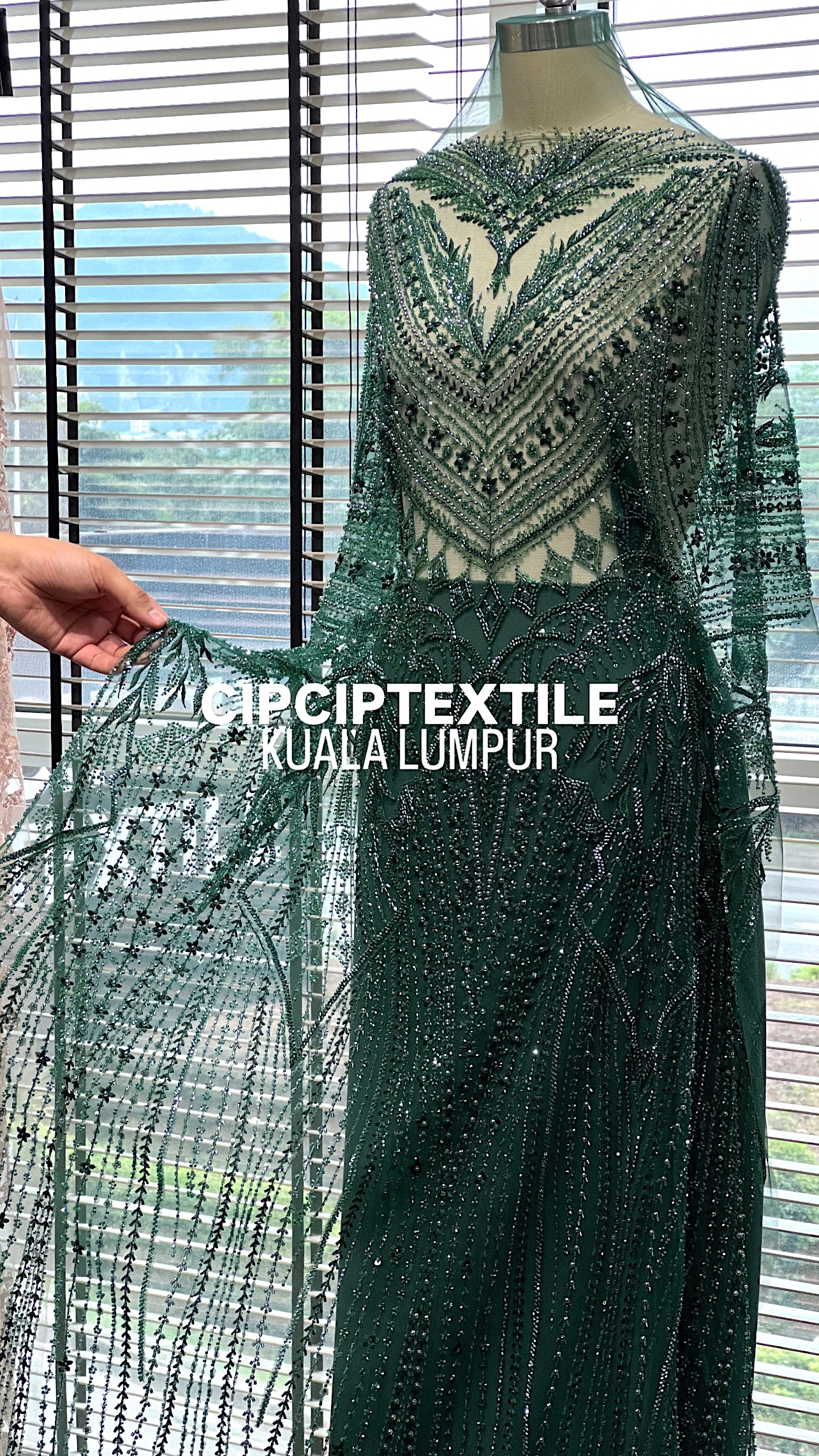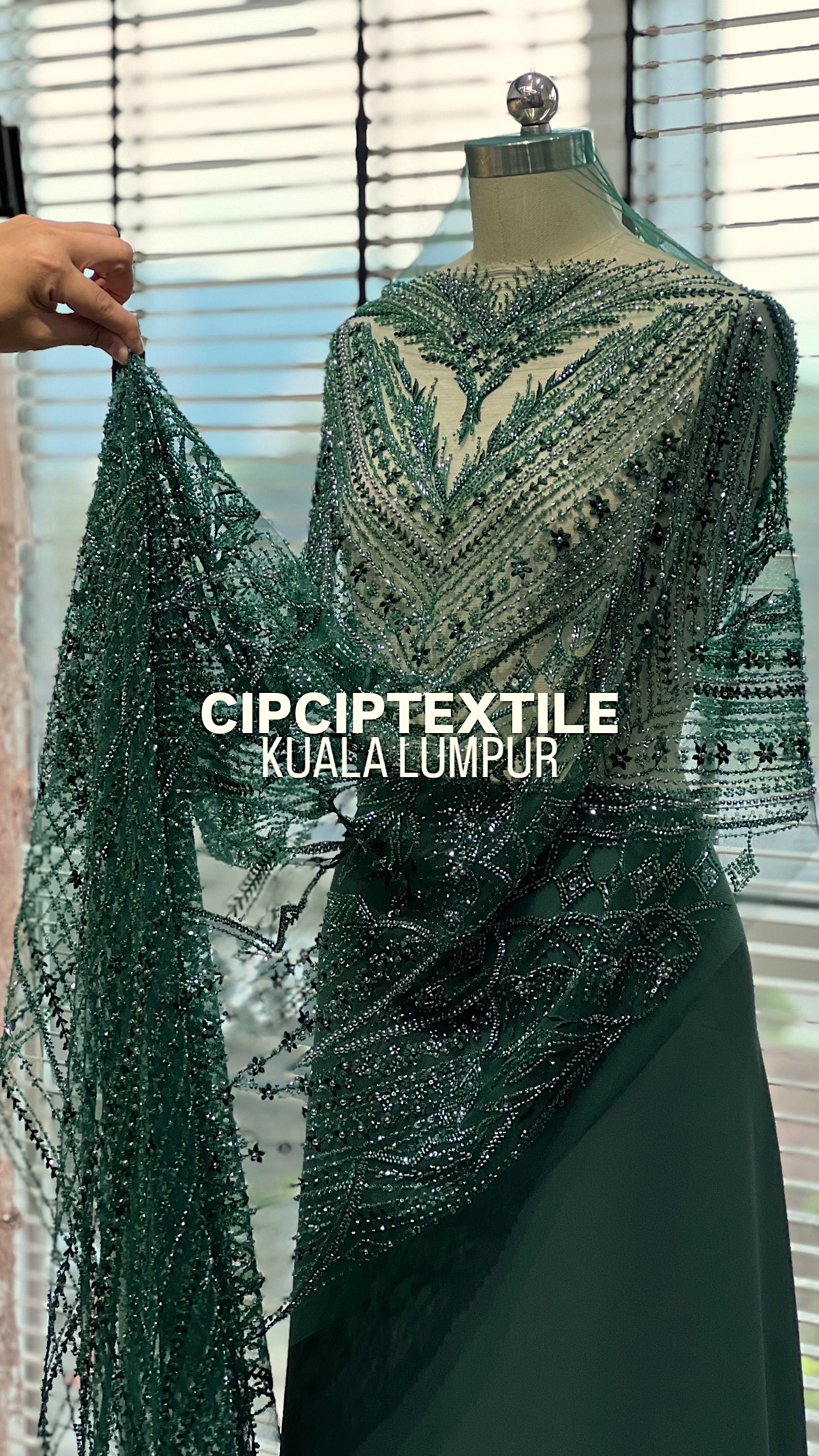 NEW (DARK GREEN) ZURI EXQUISITE GLASS PEARL BEADED LACE