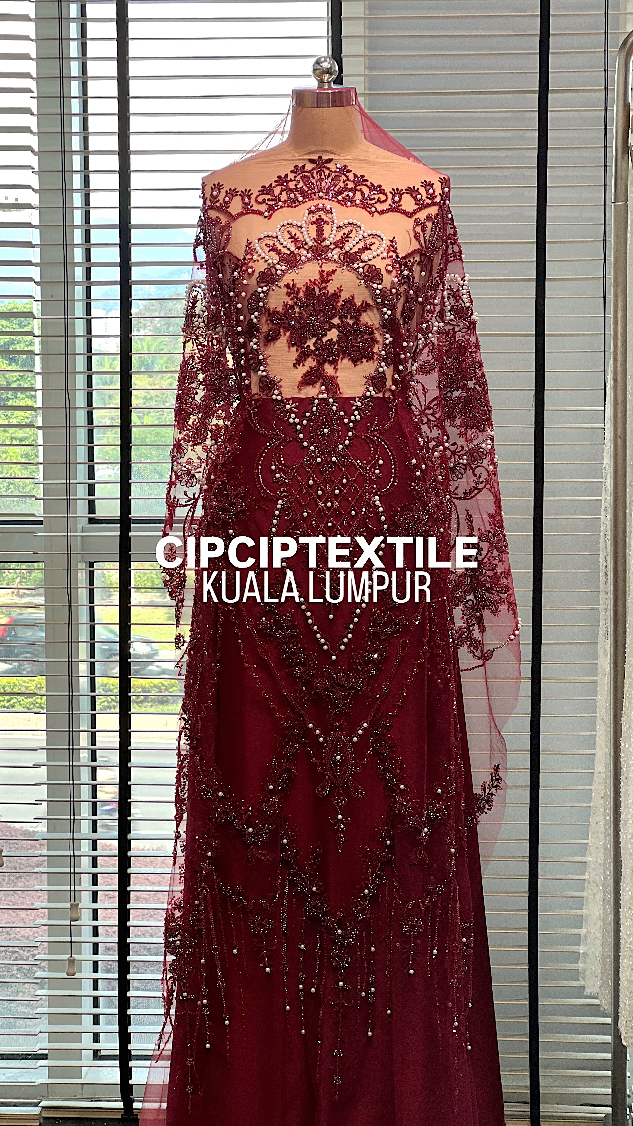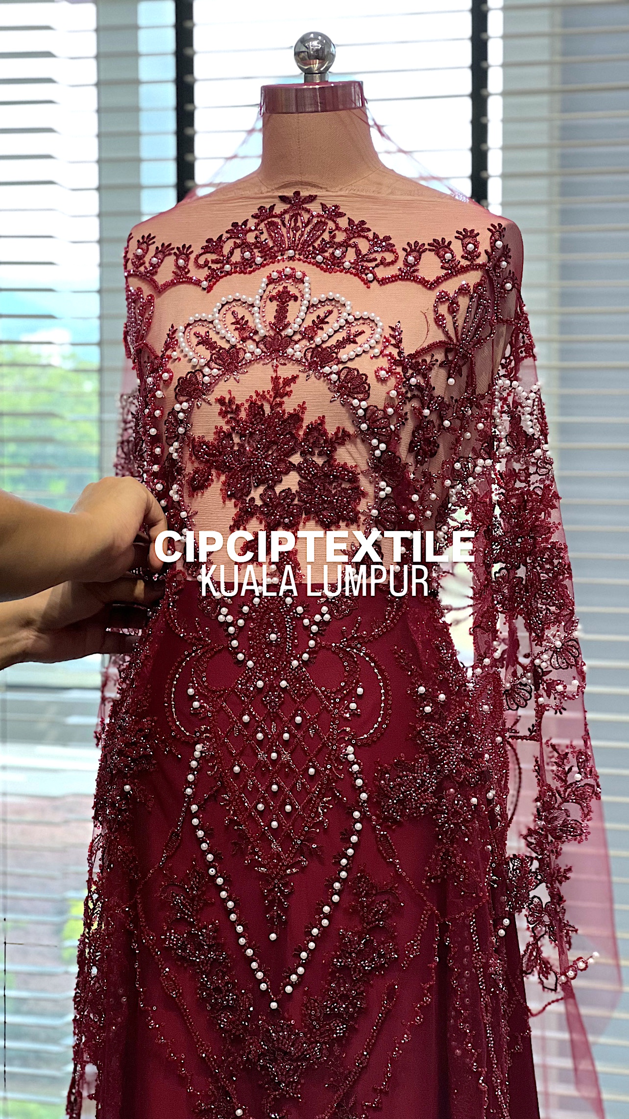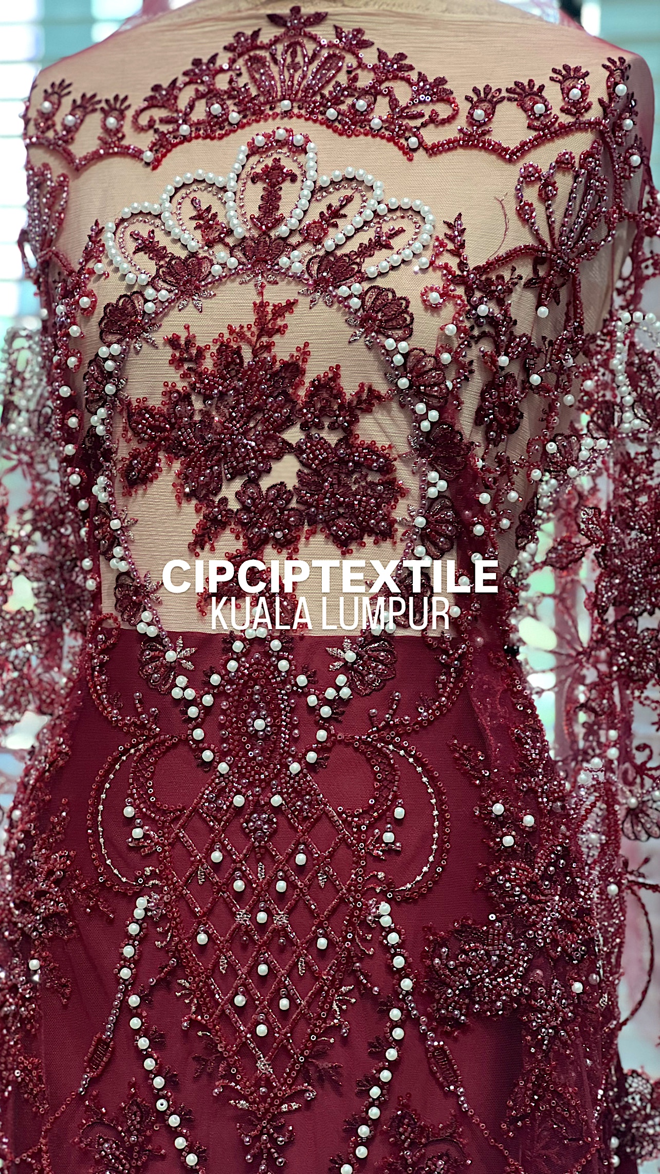 NEW (DARK RED) ANGGUN EXQUISITE 6MM PEARL BEADED LACE