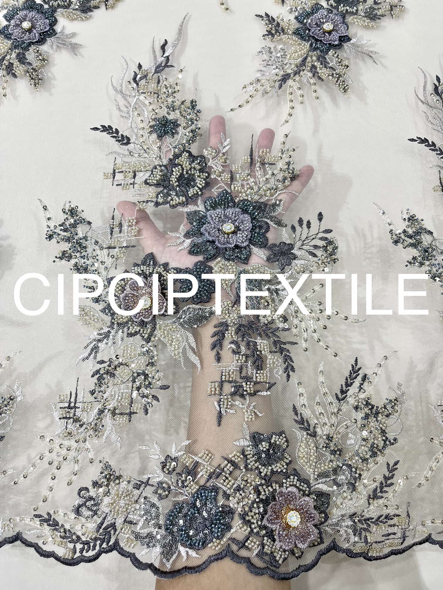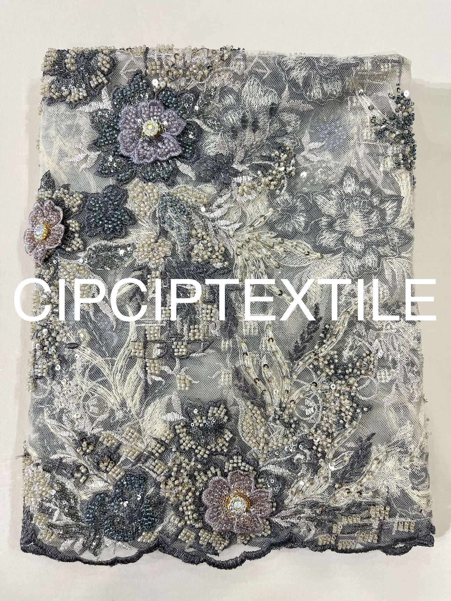 LAST STOCK 2.3METERS (DUSTY GREY) CORY BATEK APPLIQUÉ FULLY BEADED LACE
