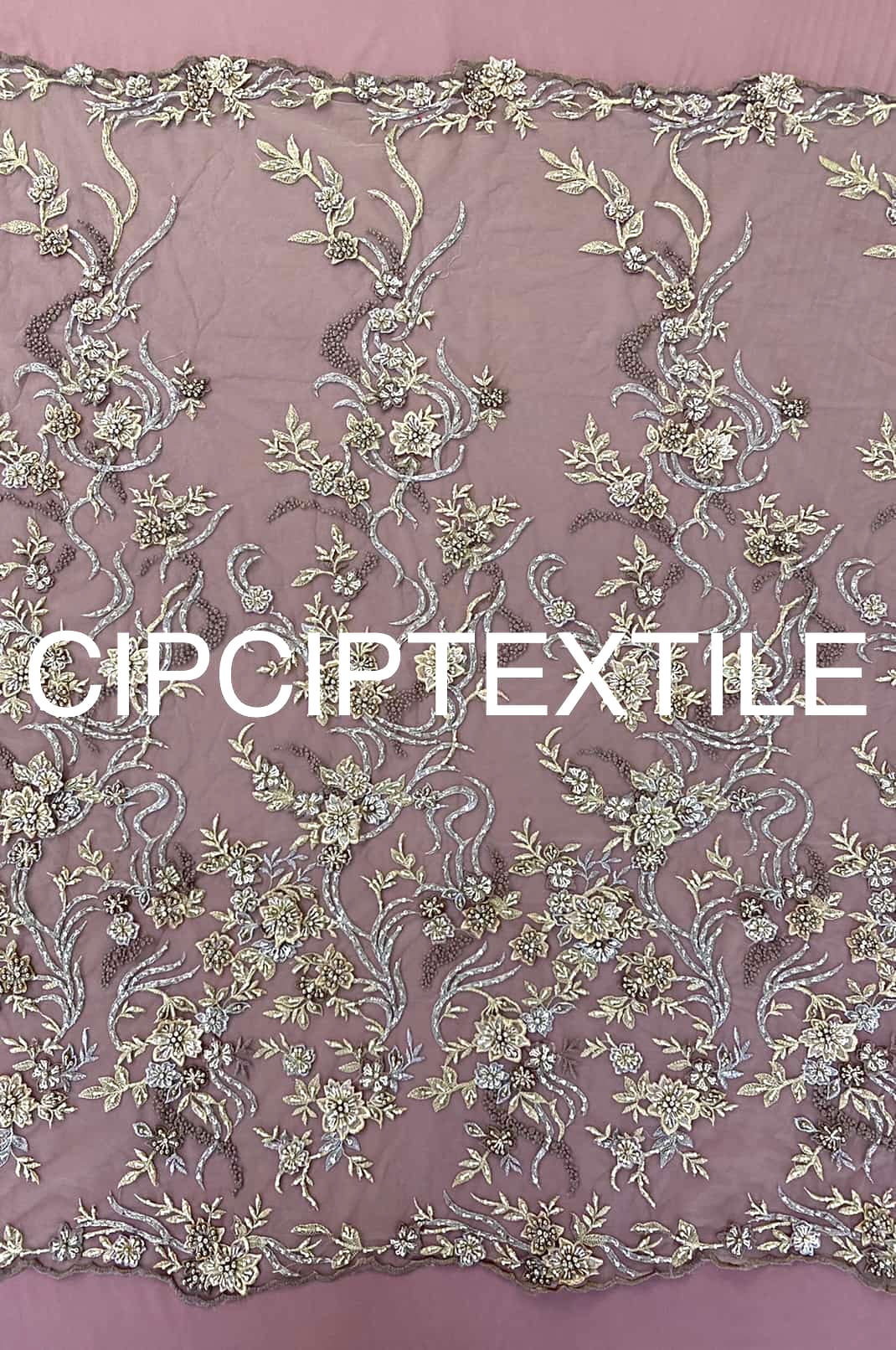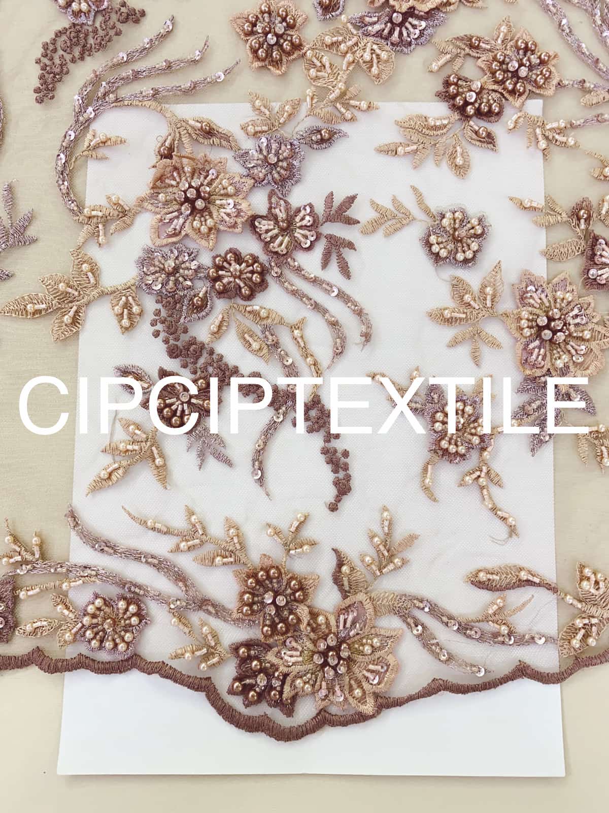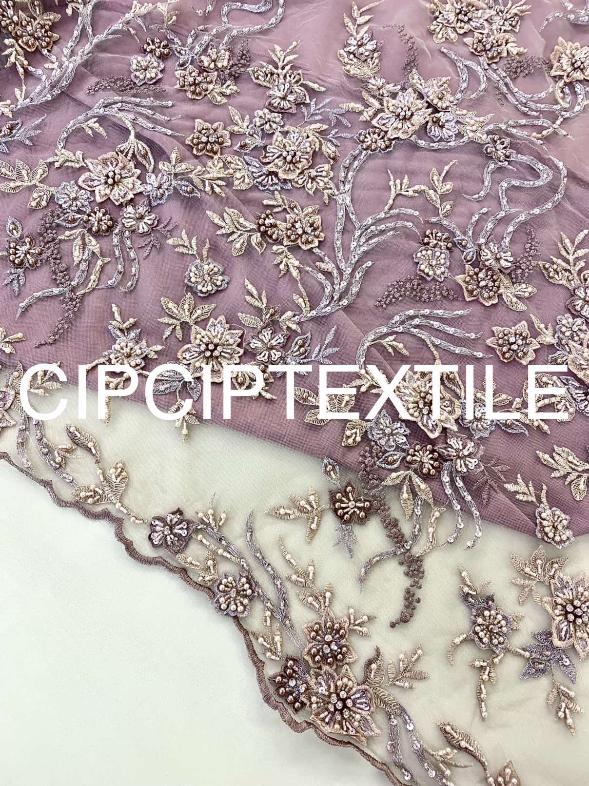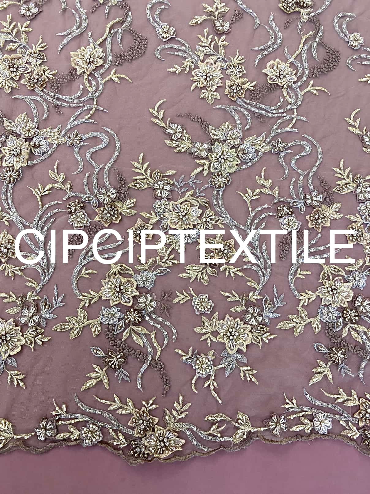 NEW (DUSTY PINK) PERLA EXQUISITE HEAVY BEADED LACE