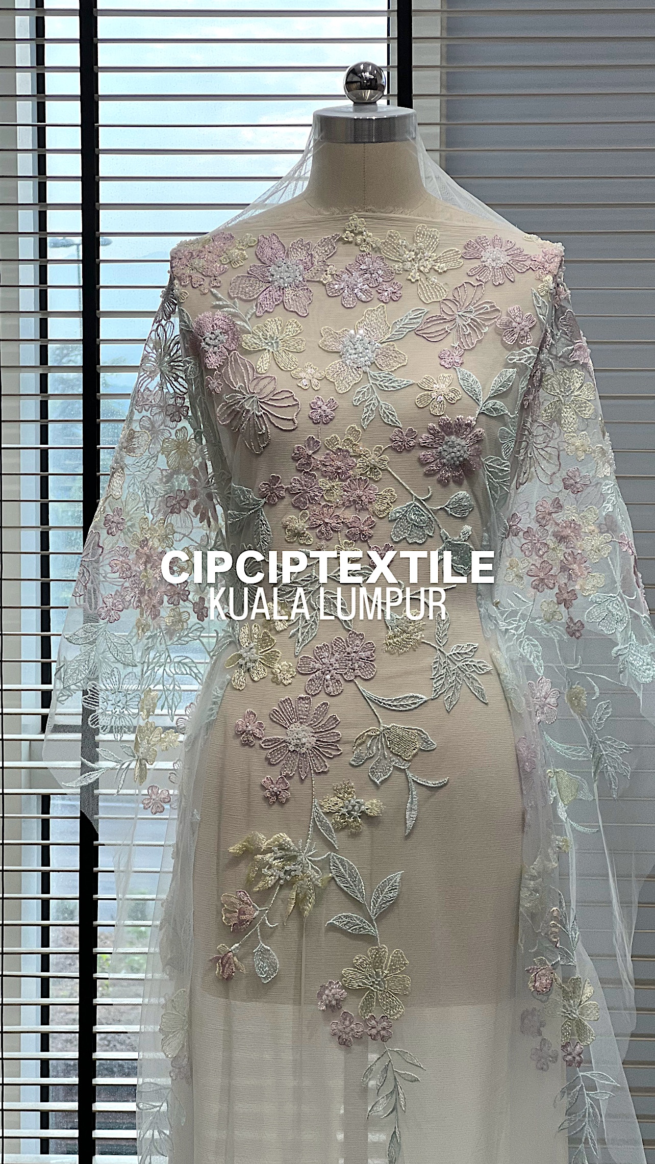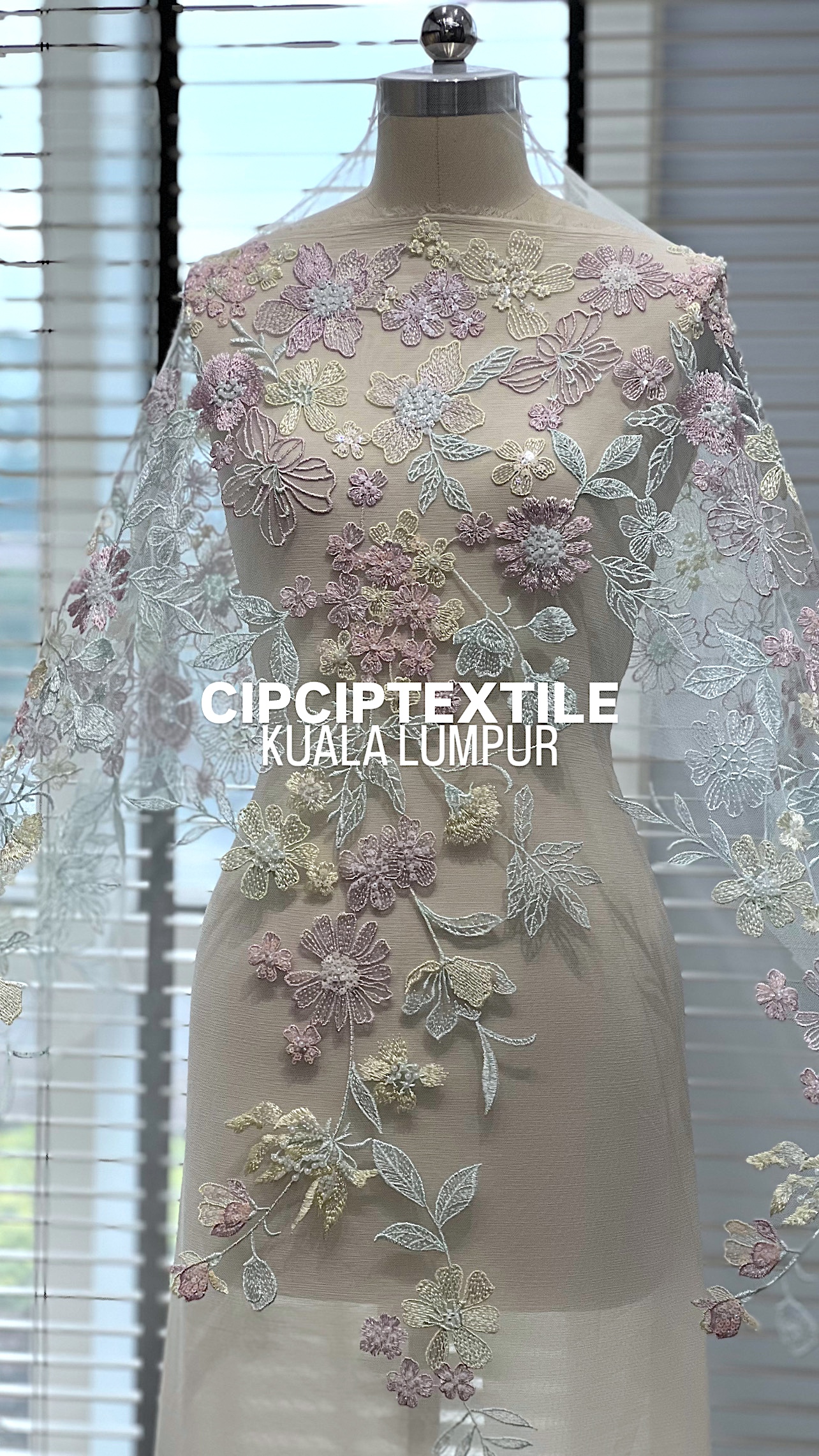 NEW (MIXED PASTEL) LANIA EXQUISITE GLASS PEARL BEADED LACE