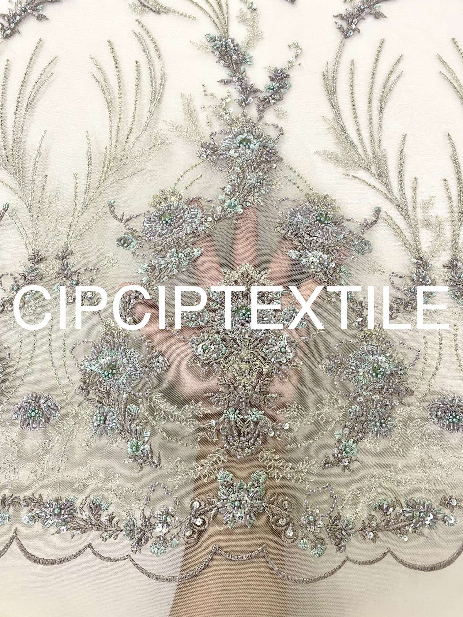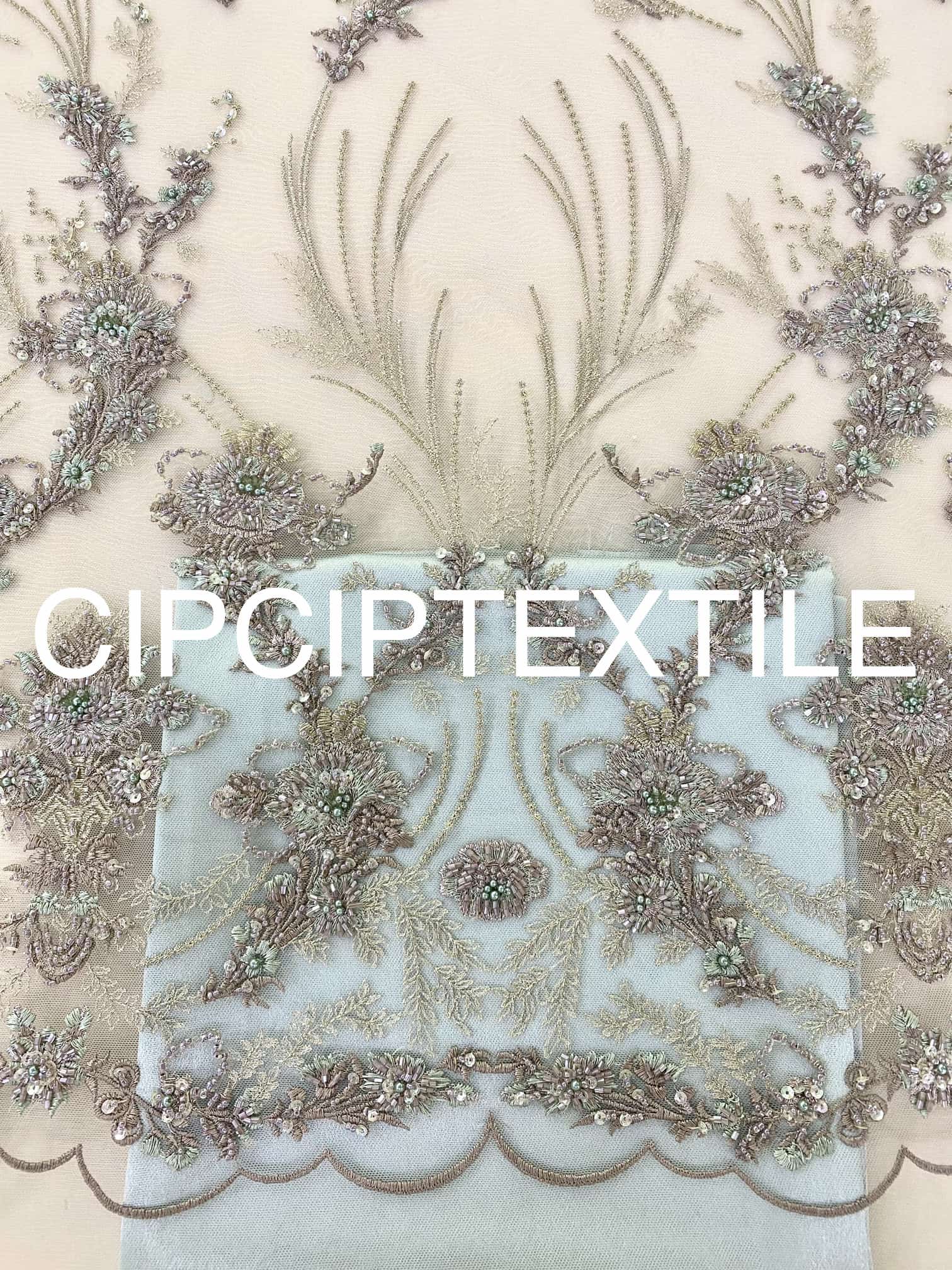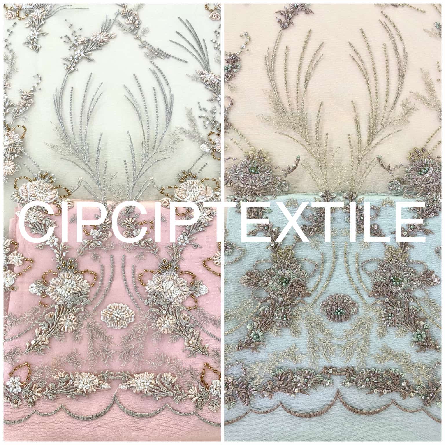 Completely dazzling and of an excellent quality, this gorgeous, beaded pearl sequin lace. With it’s luminescent and intricate beading, this modern lace fabric is a class fabric lace and consists of a very textured surface. Ideas for such a detailed fabric may include overlays for formal dresses and gorgeous fitted dress.