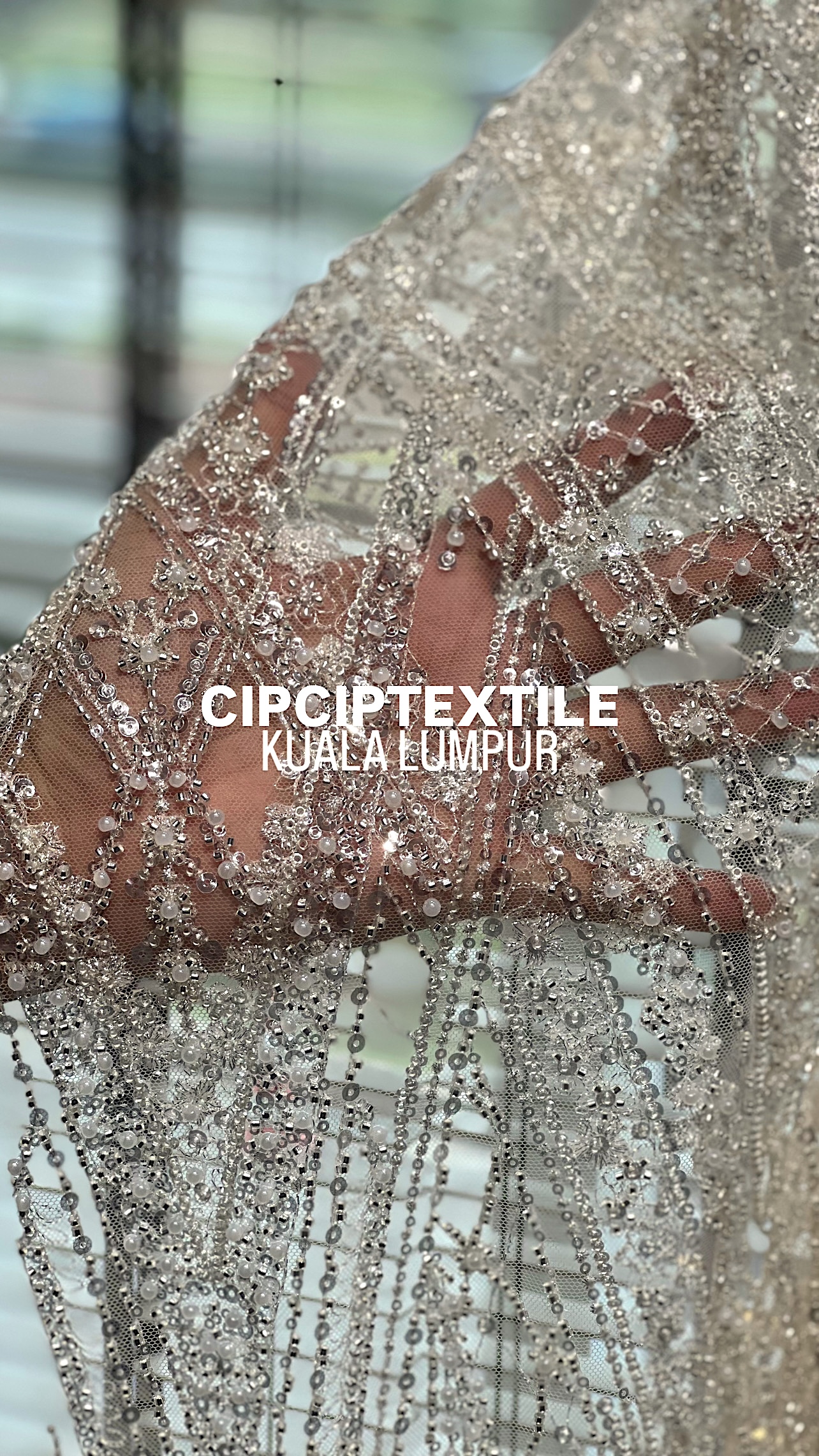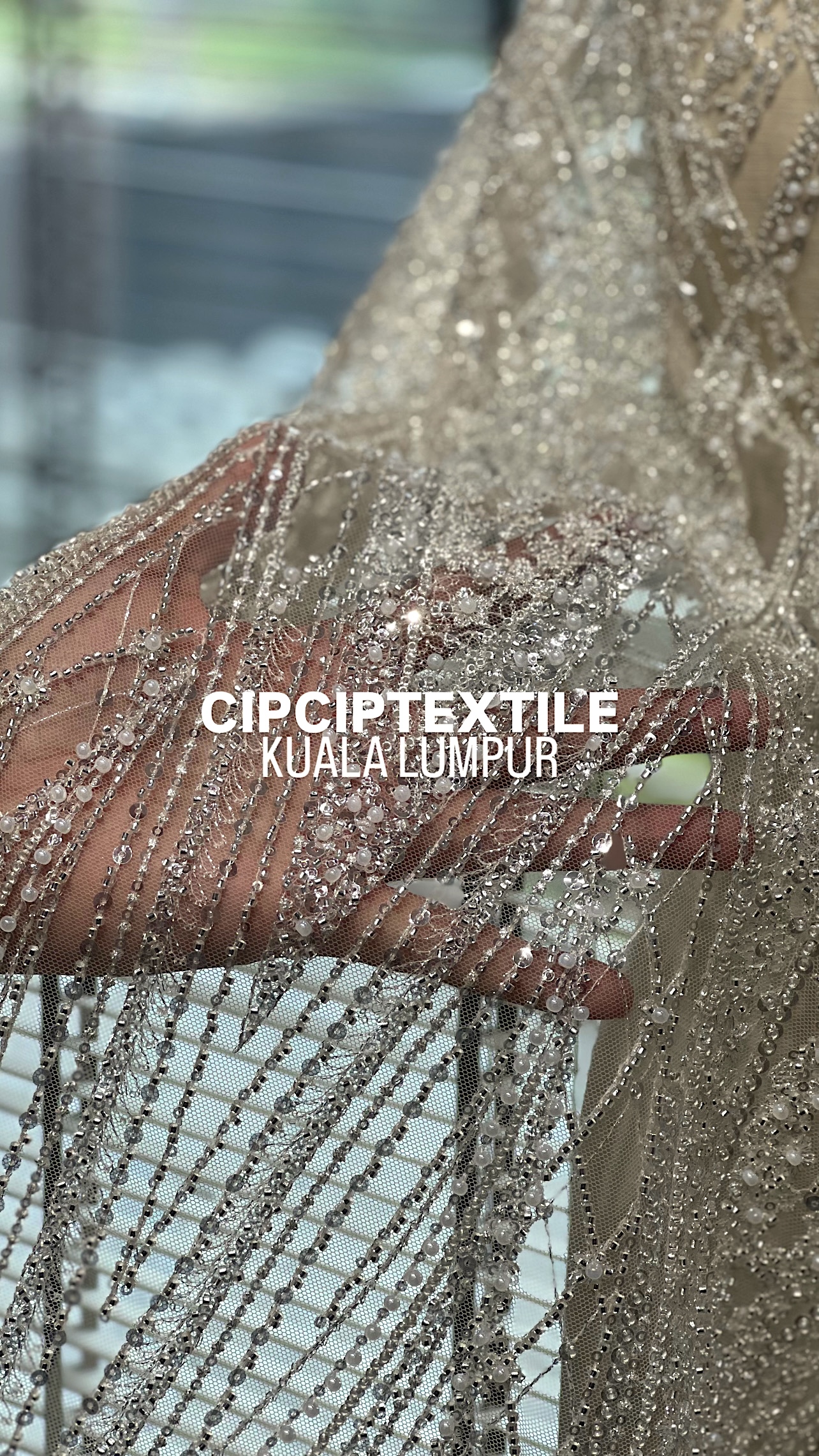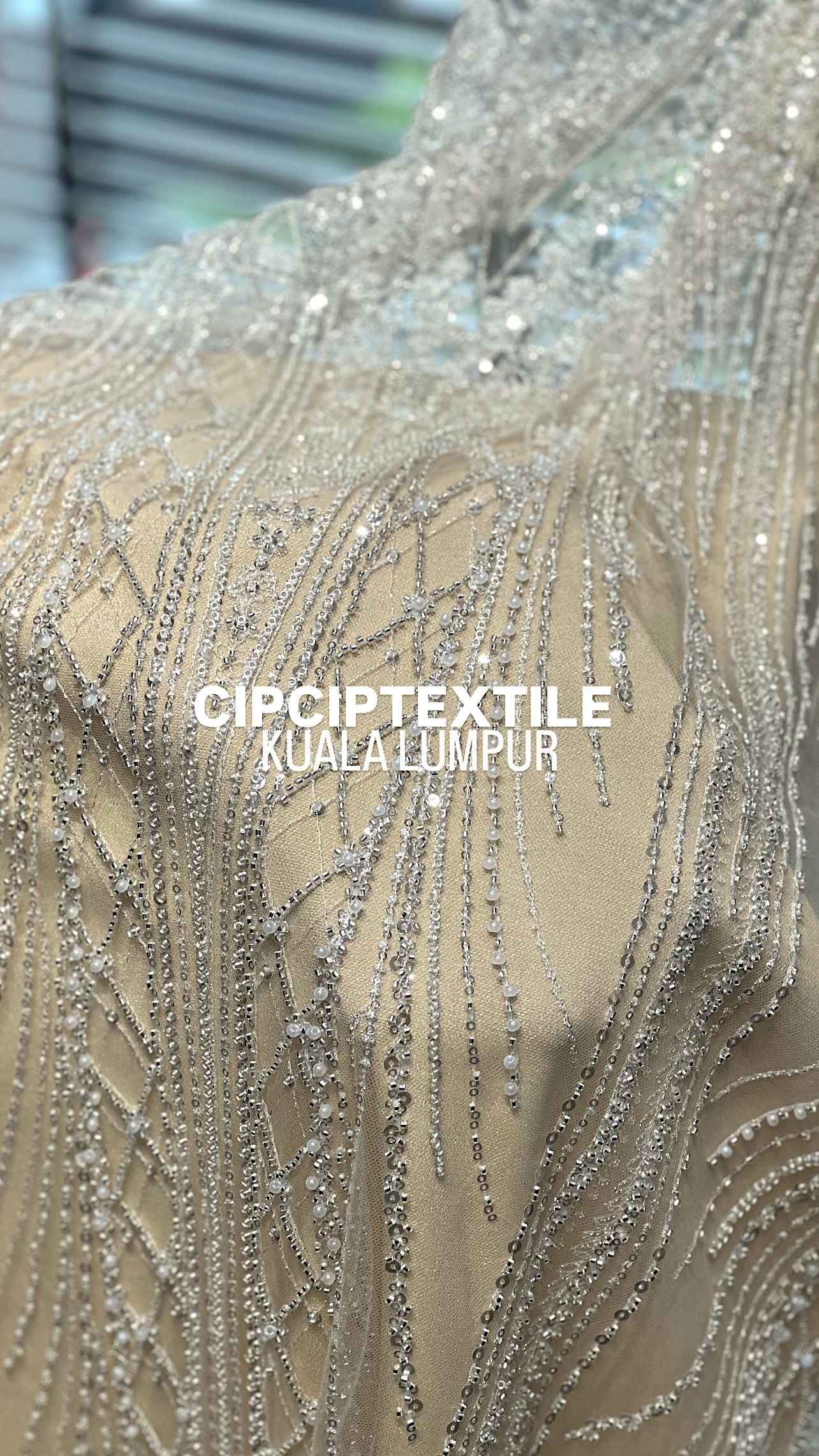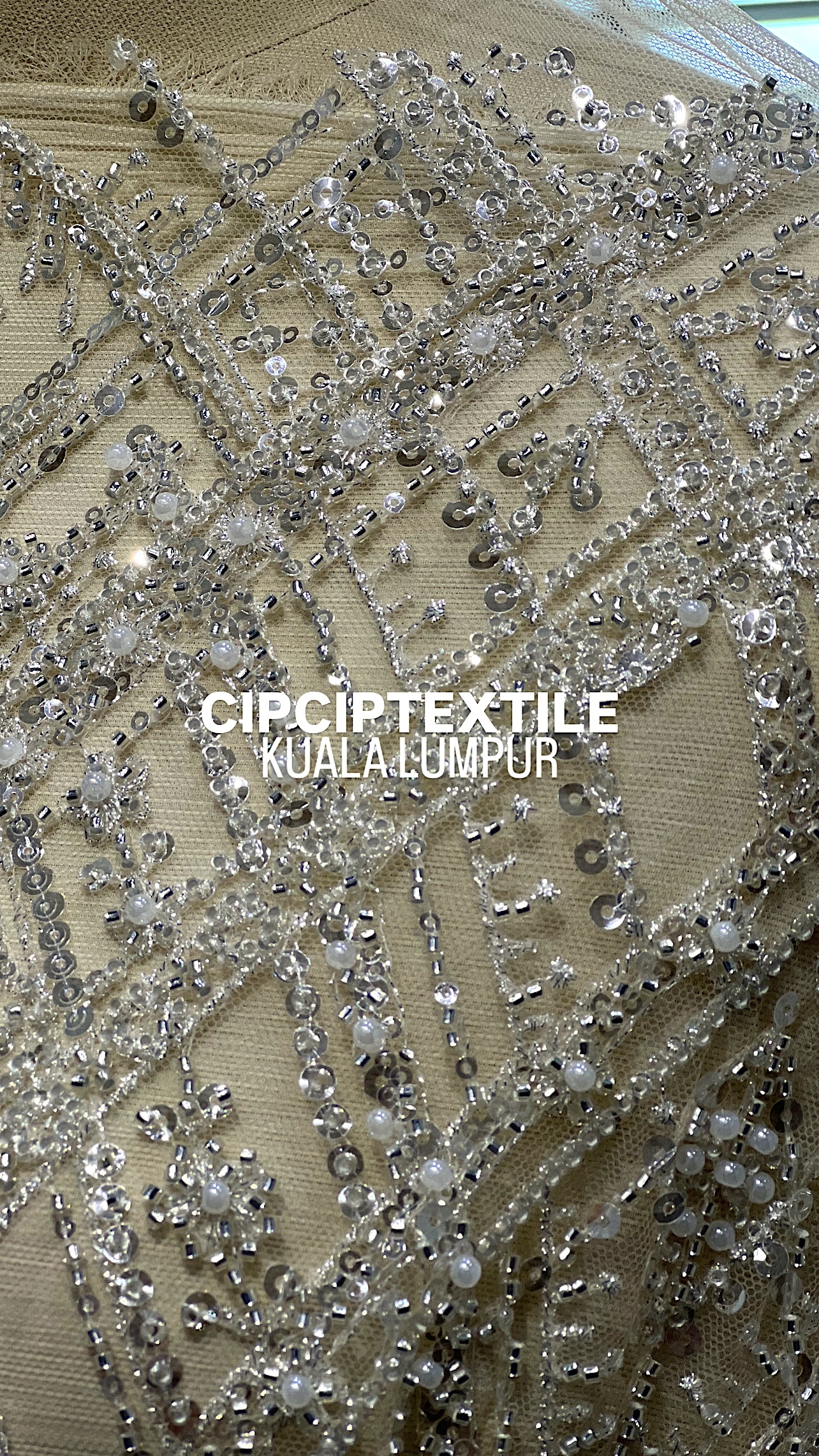 NEW (NUDE SILVER) CASCADE EXQUISITE ABSTRACT GLASS BEADED LACE