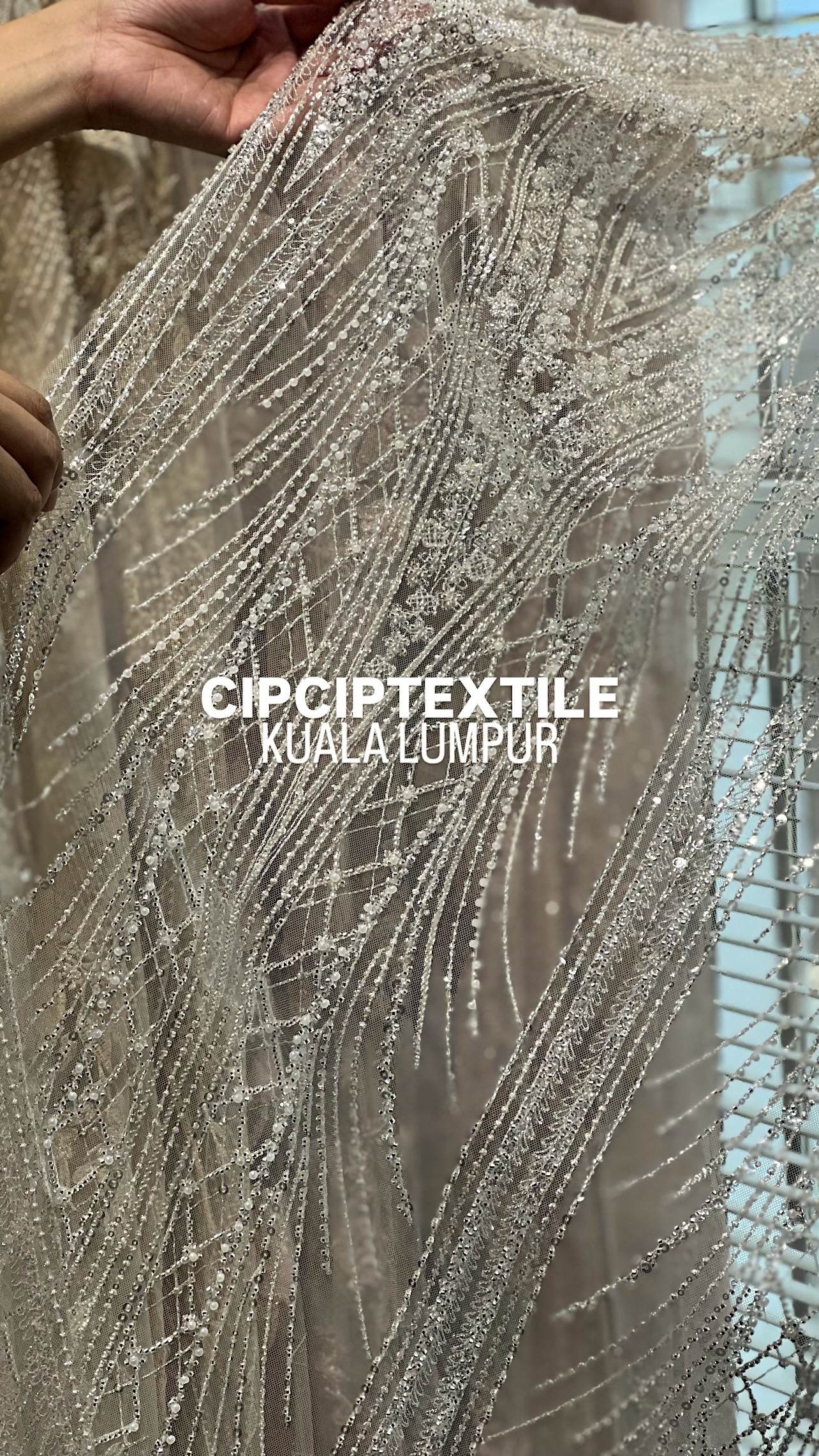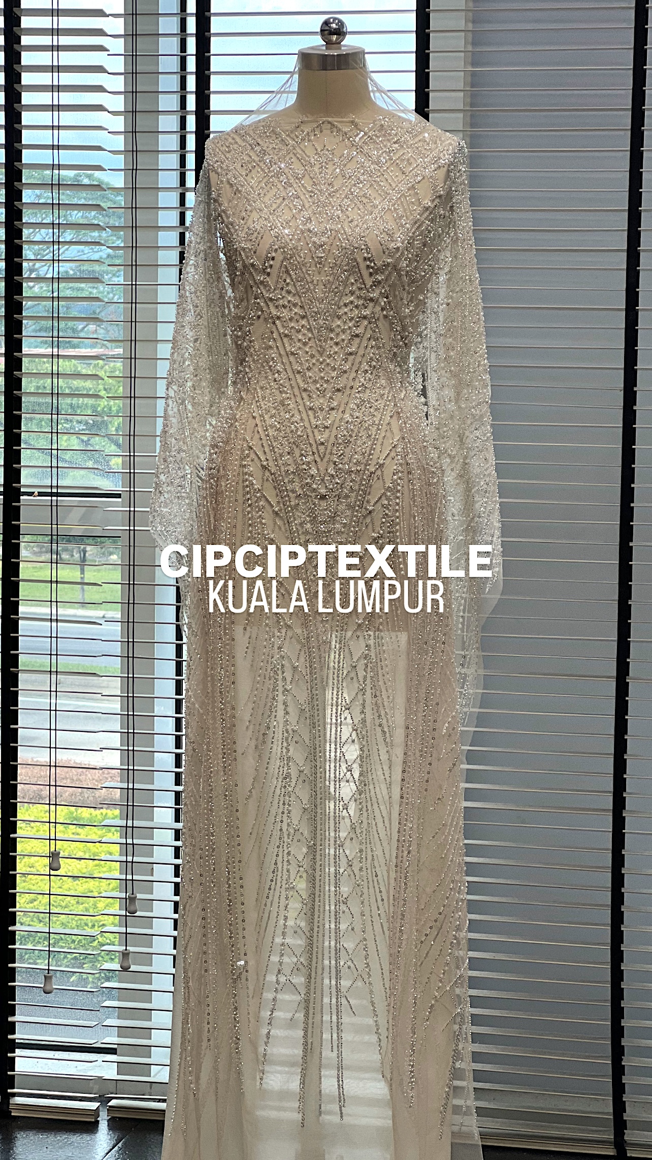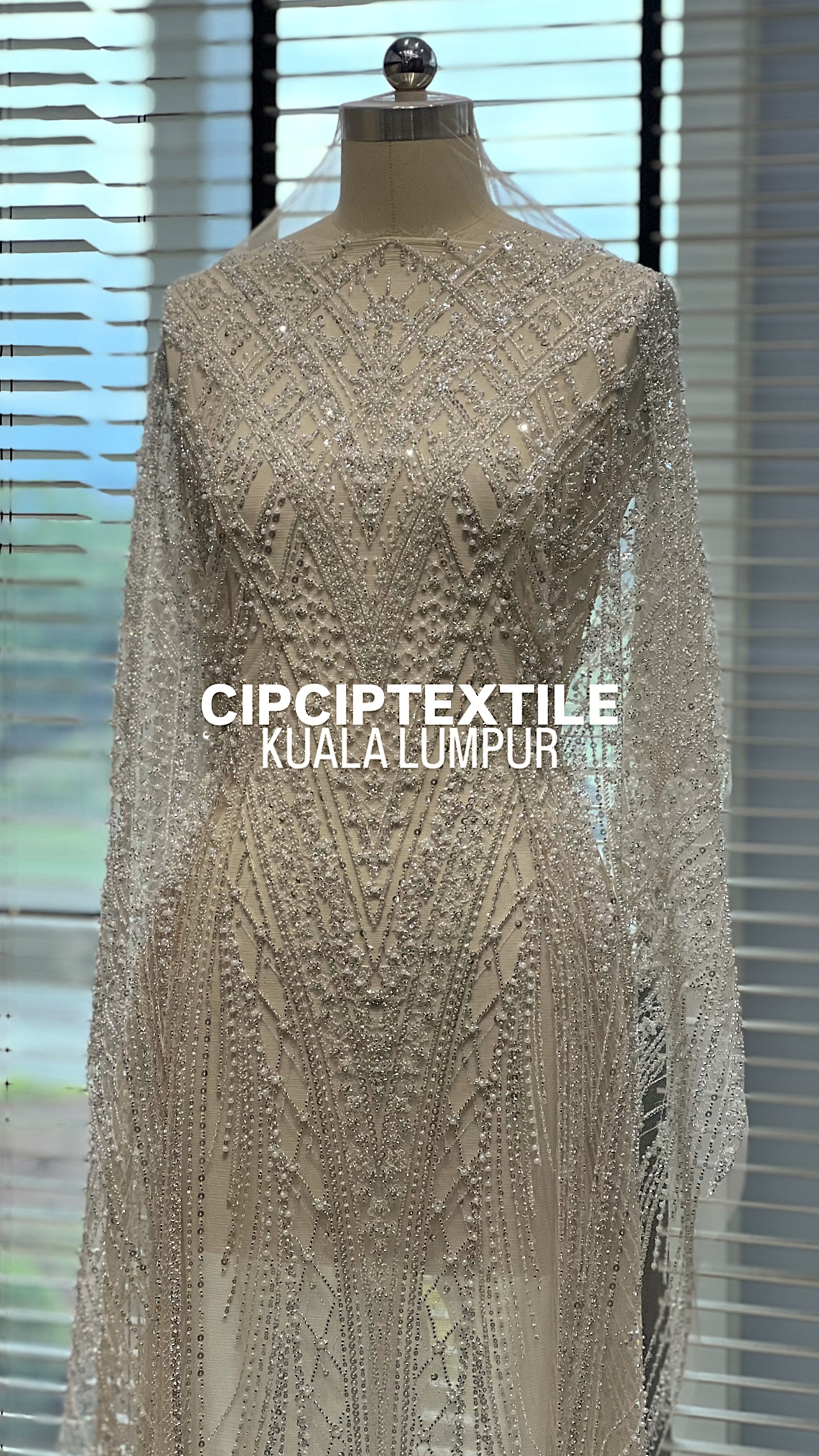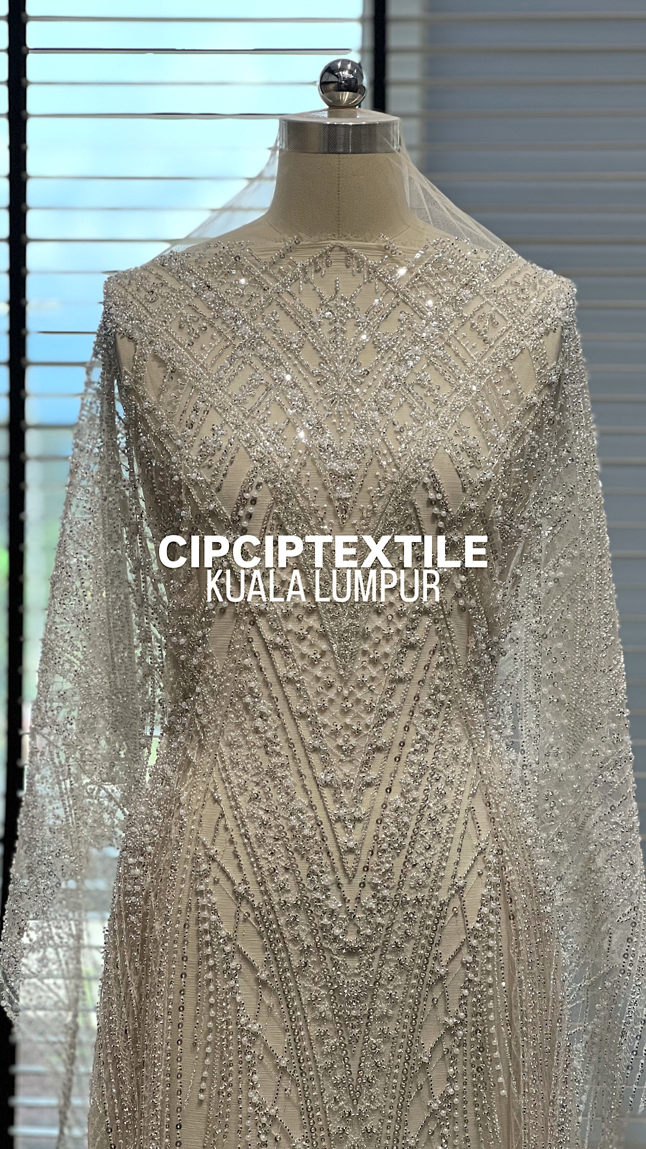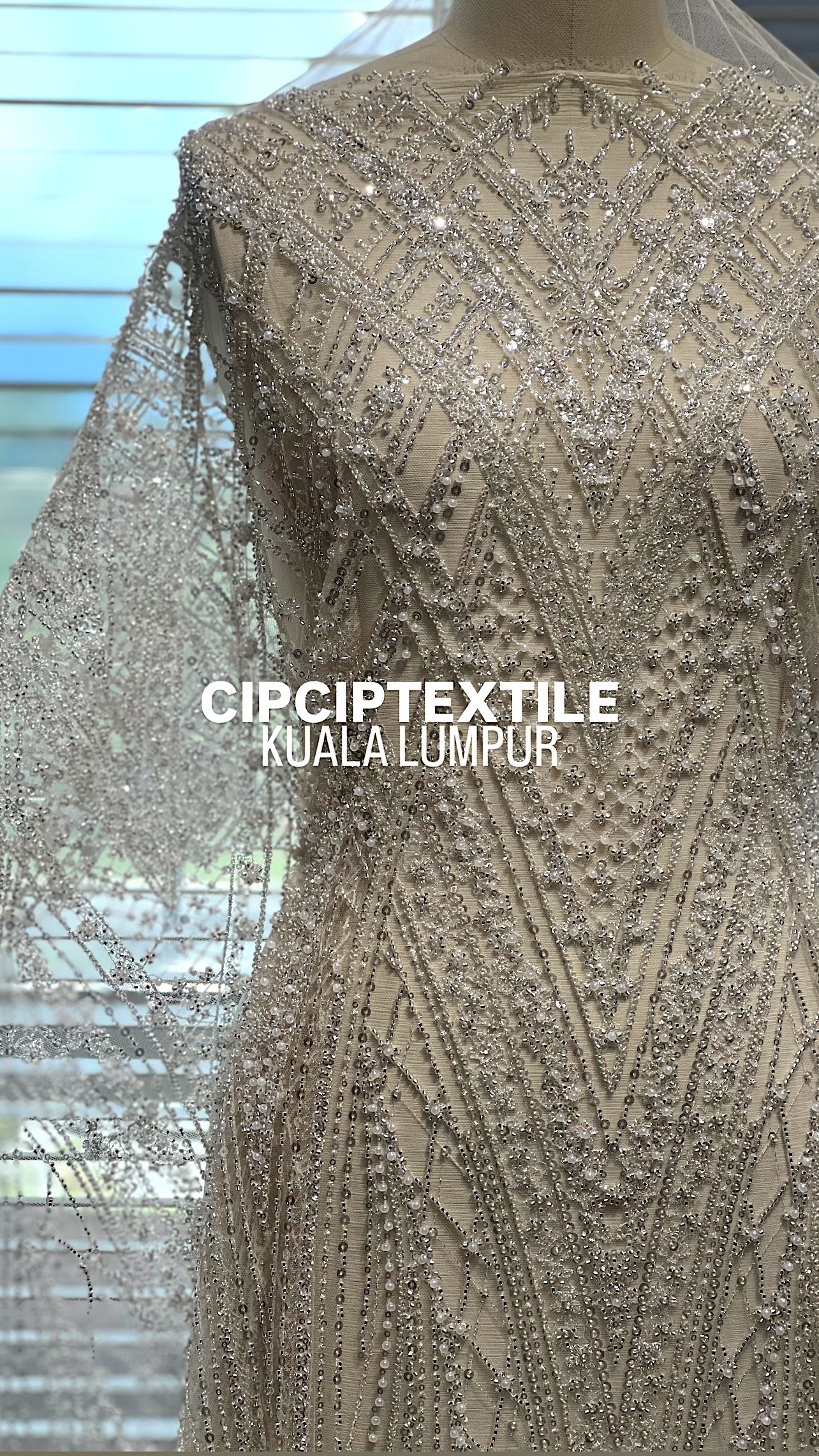 NEW (NUDE SILVER) CASCADE EXQUISITE ABSTRACT GLASS BEADED LACE