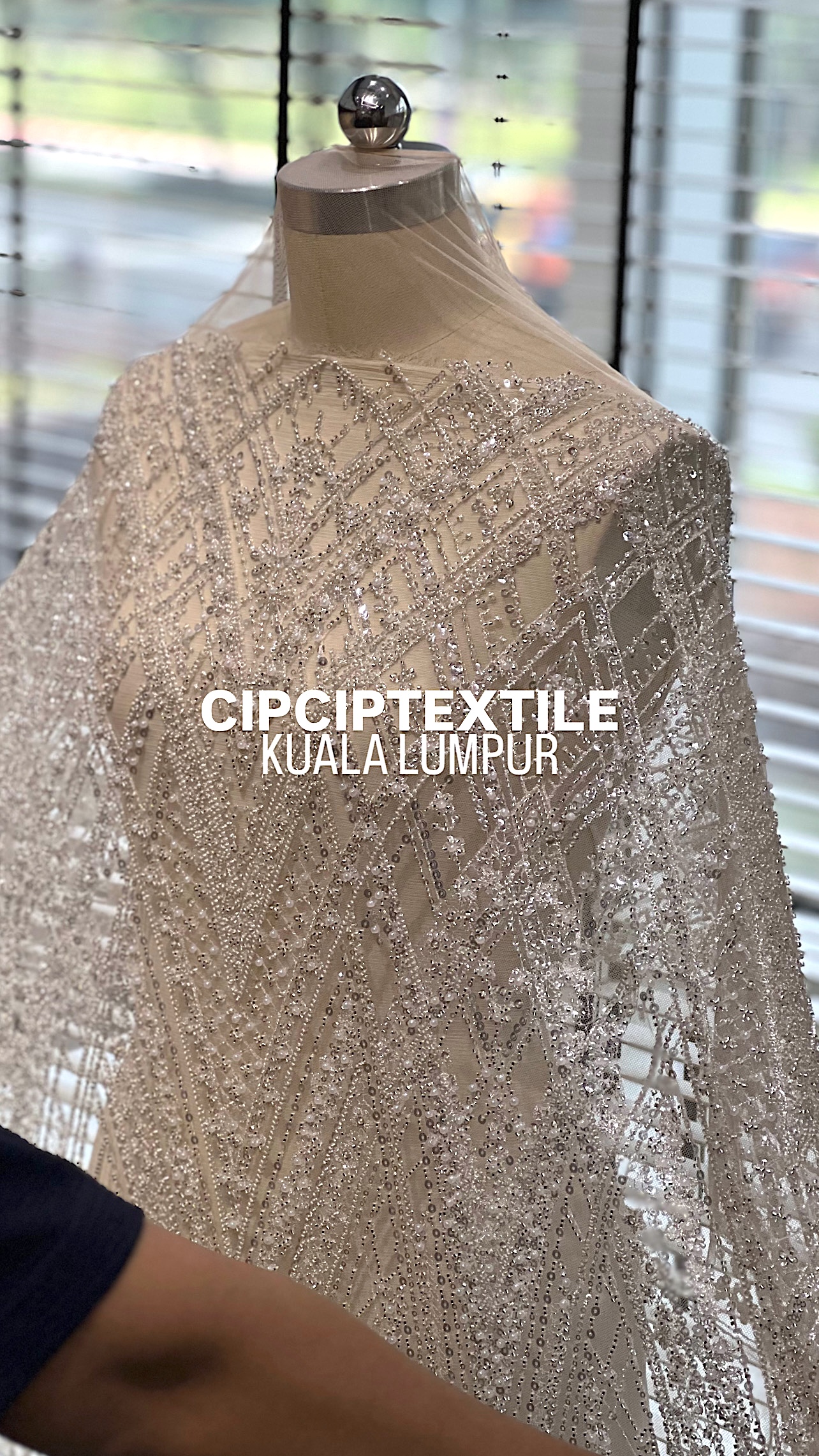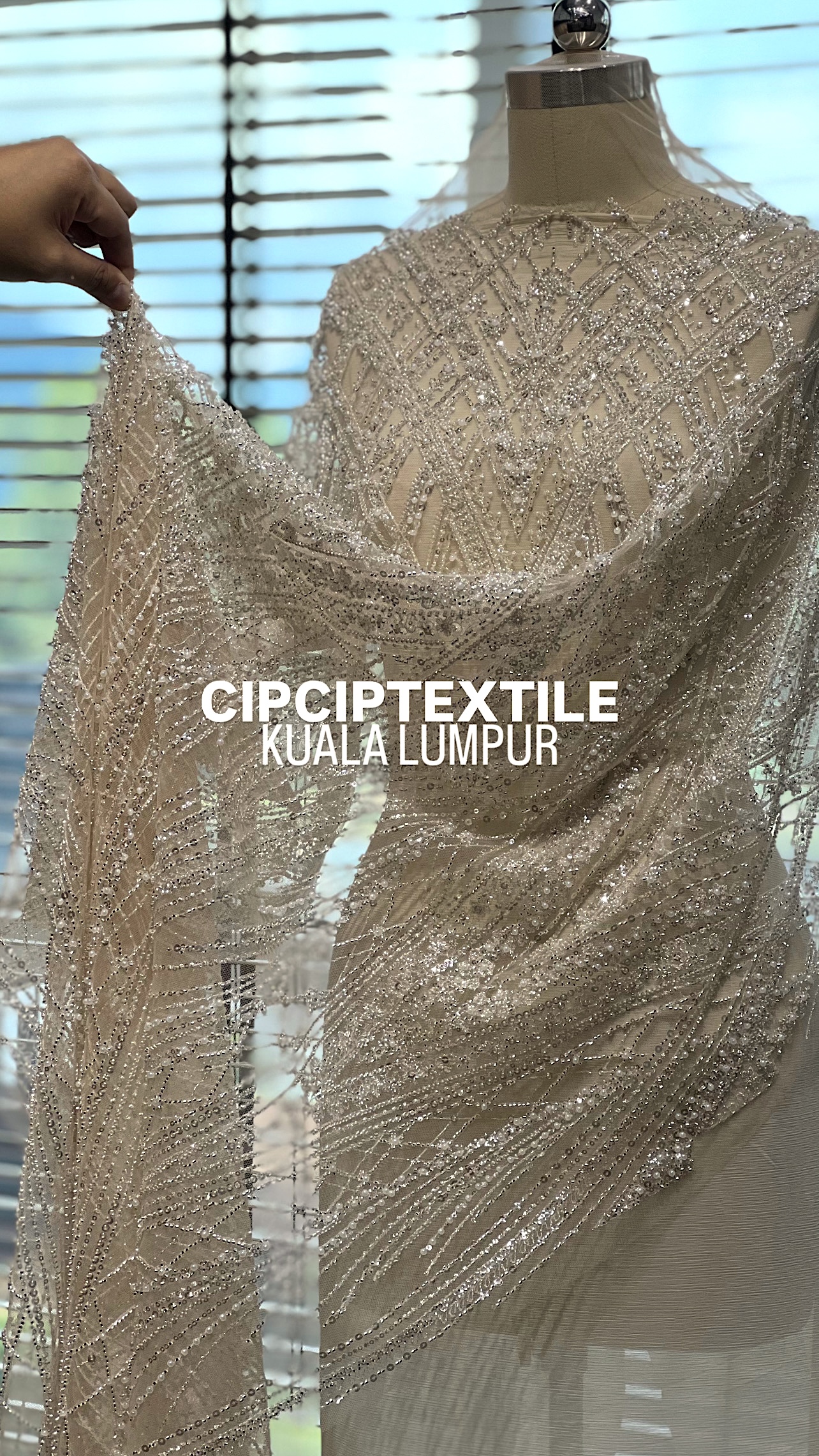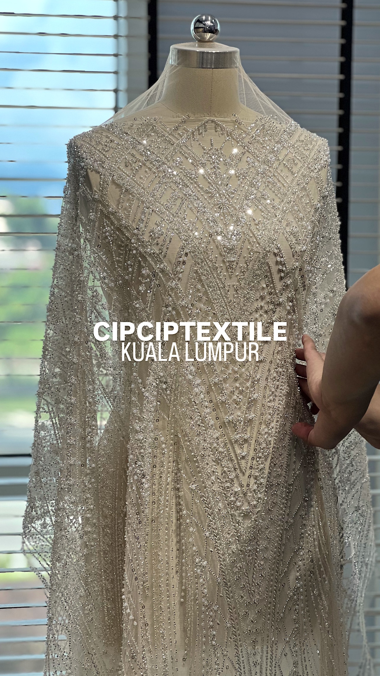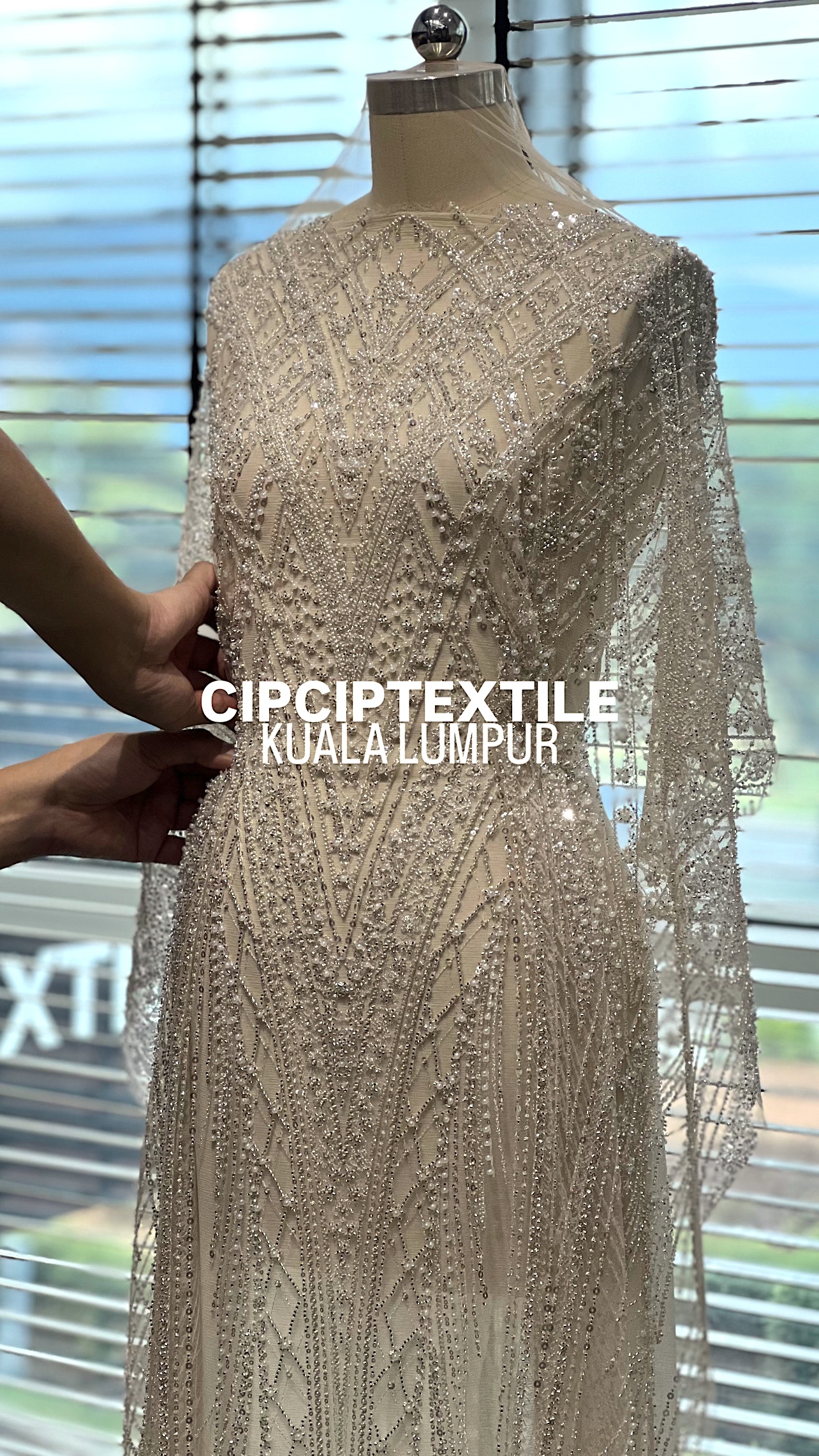 NEW (NUDE SILVER) CASCADE EXQUISITE ABSTRACT GLASS BEADED LACE